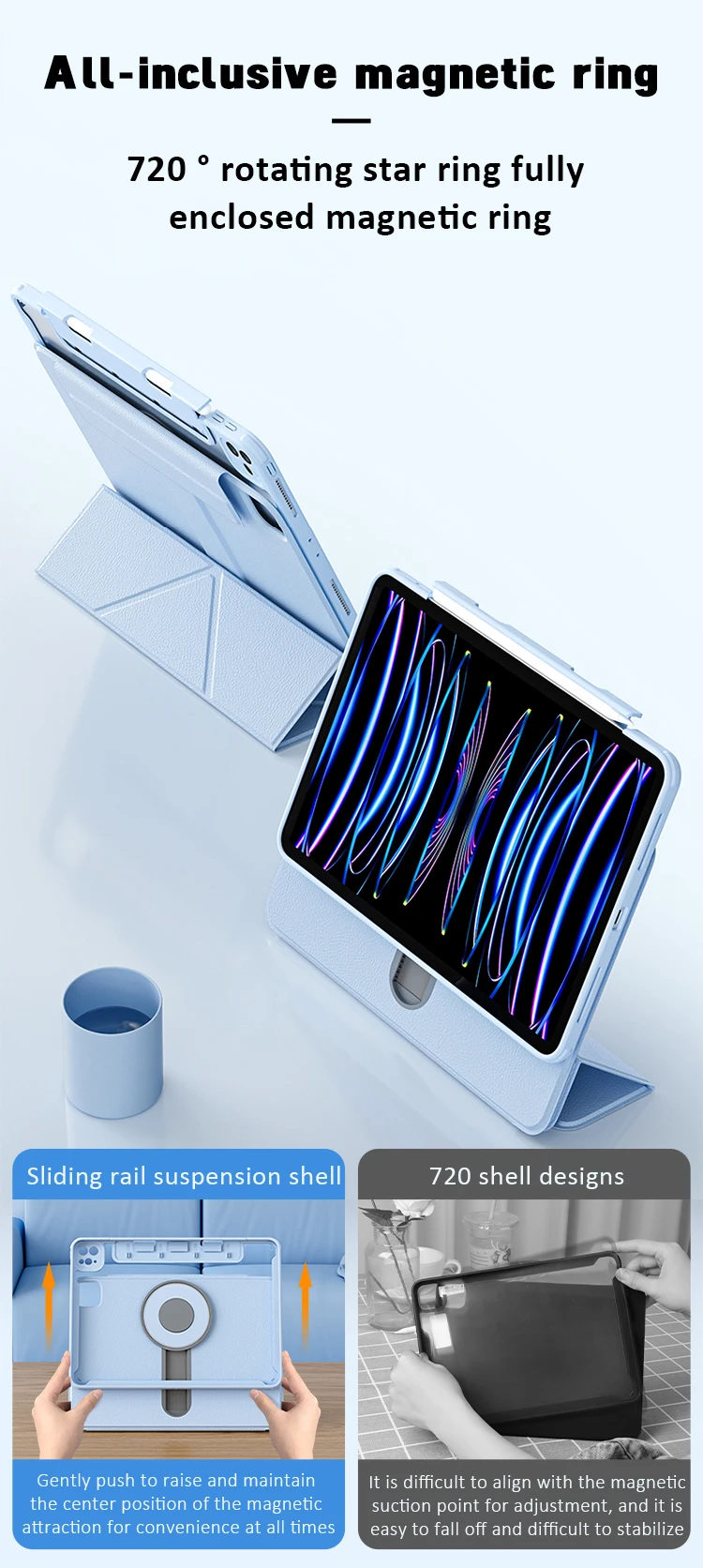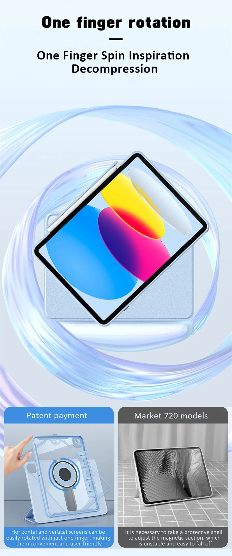 Funda giratoria de 360 ° para iPad, cubierta con cajón de soporte para iPad Air 10,9 Pro 11, 5/4, 2022, 2021, 2020, 10,2, 9th/8/7 generación
