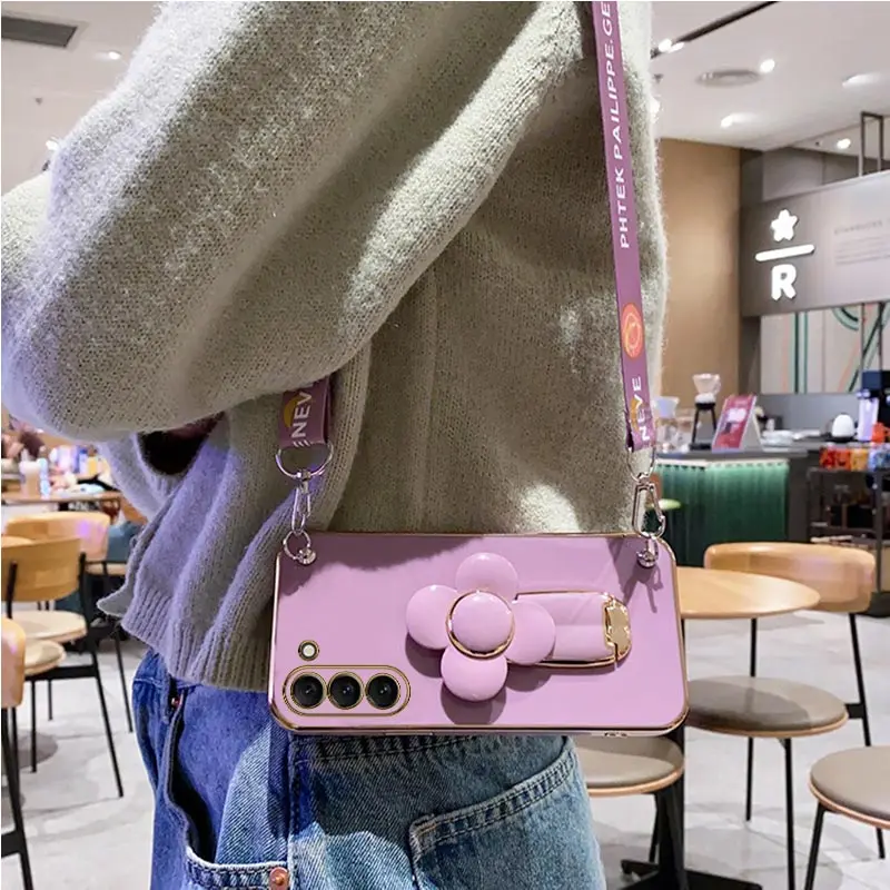 Soporte giratorio para molino de viento, funda con correa de cordón para Samsung Galaxy S21 S20 S22 S23 S10 S9 S8 Note 10 20 Plus Ultra S21 S20 FE