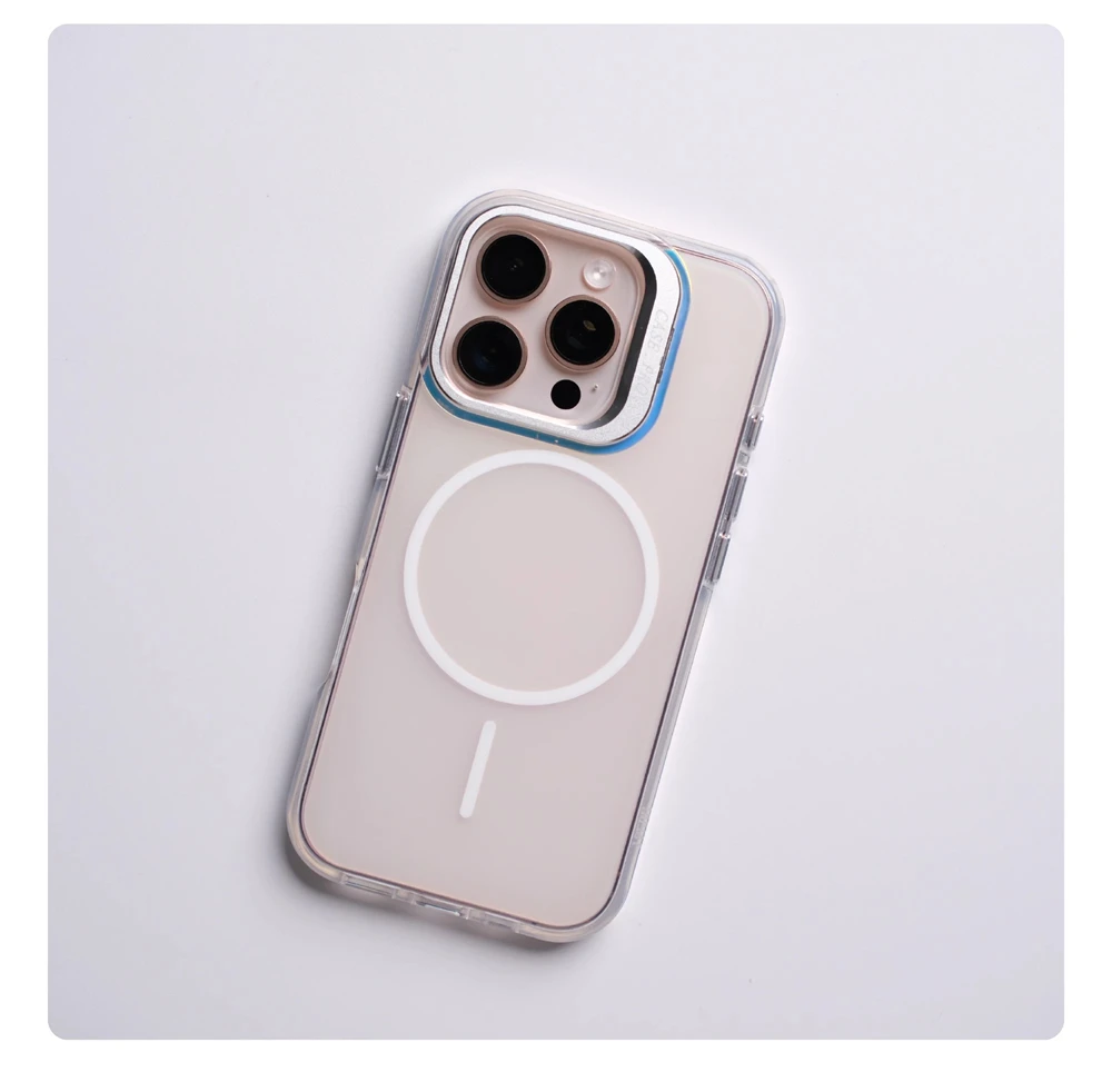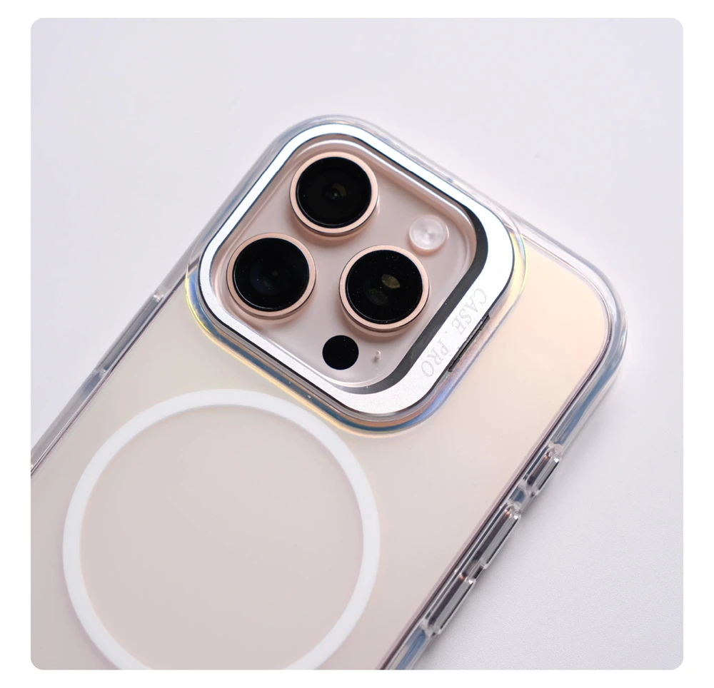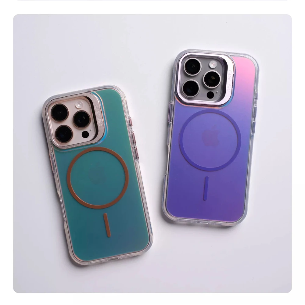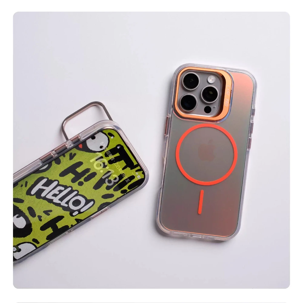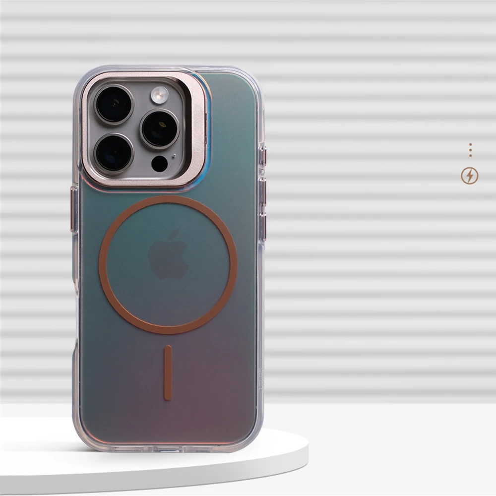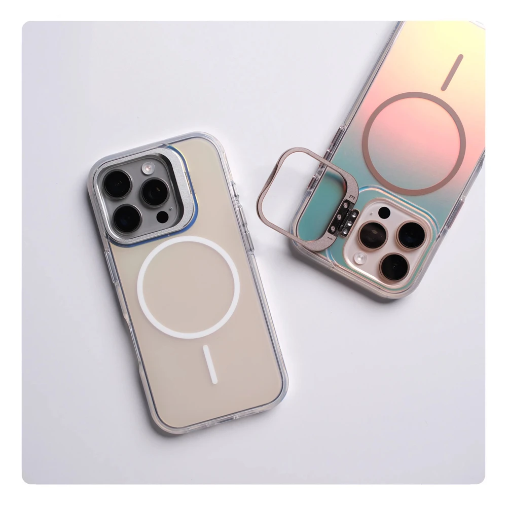 Funda con gradiente láser y soporte de lente Invisible para iPhone 17 16 Pro Max 14 15 13 12 17Air Magsafe, cubierta de parachoques magnética a prueba de golpes