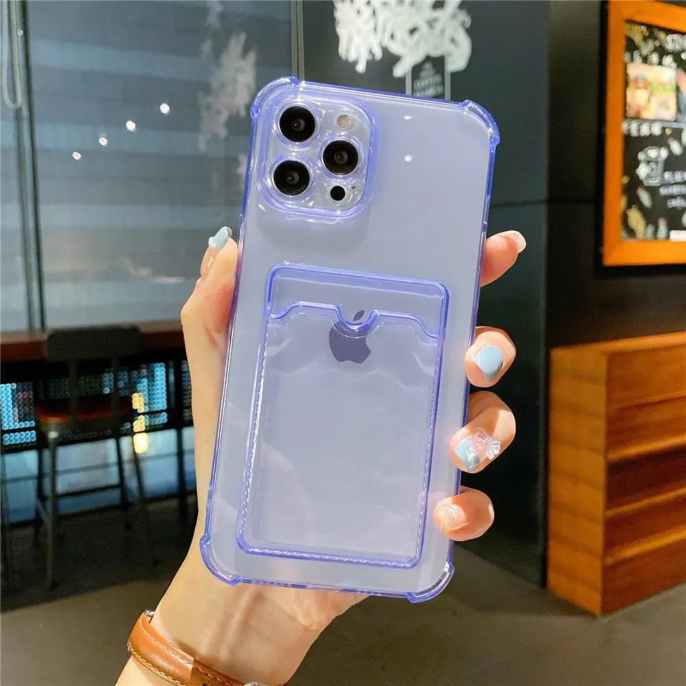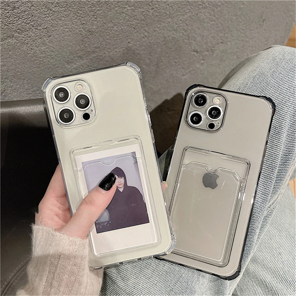 Funda gruesa con ranura para tarjetas para iPhone 13 11 12 14 15 Pro Max Mini X XS XR SE 7 8 Plus, funda tipo billetera transparente a prueba de golpes