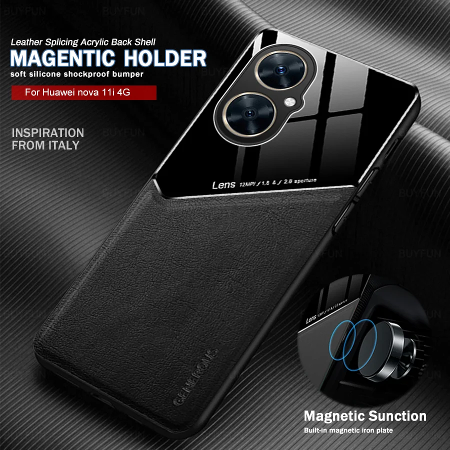 Comprar Funda Hauwei Nova11i de lujo con placa magnética, Funda trasera de cuero PU para Huawei Nova 11i 4G MAO-LX9 6,8 ", Funda protectora de marco suave de TPU