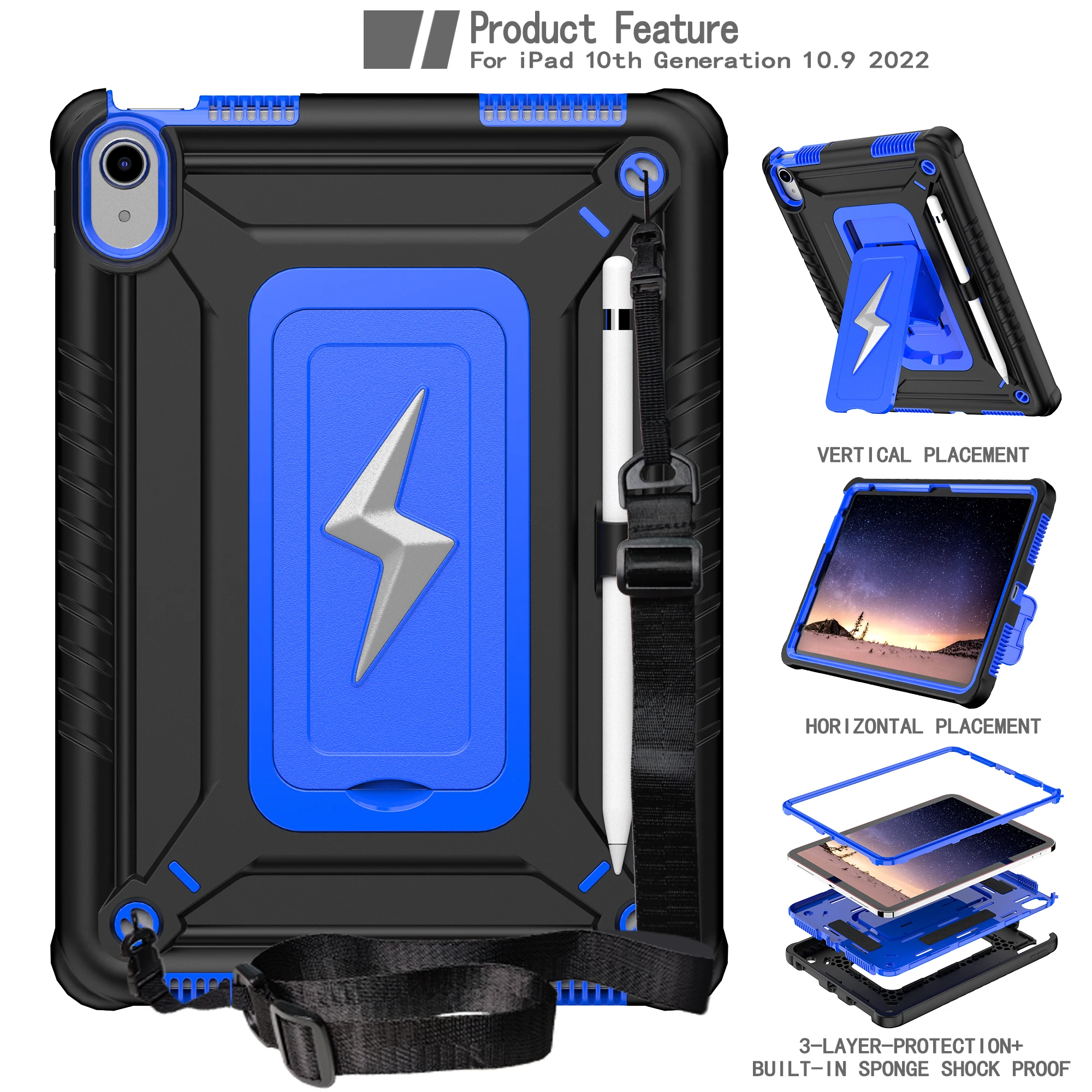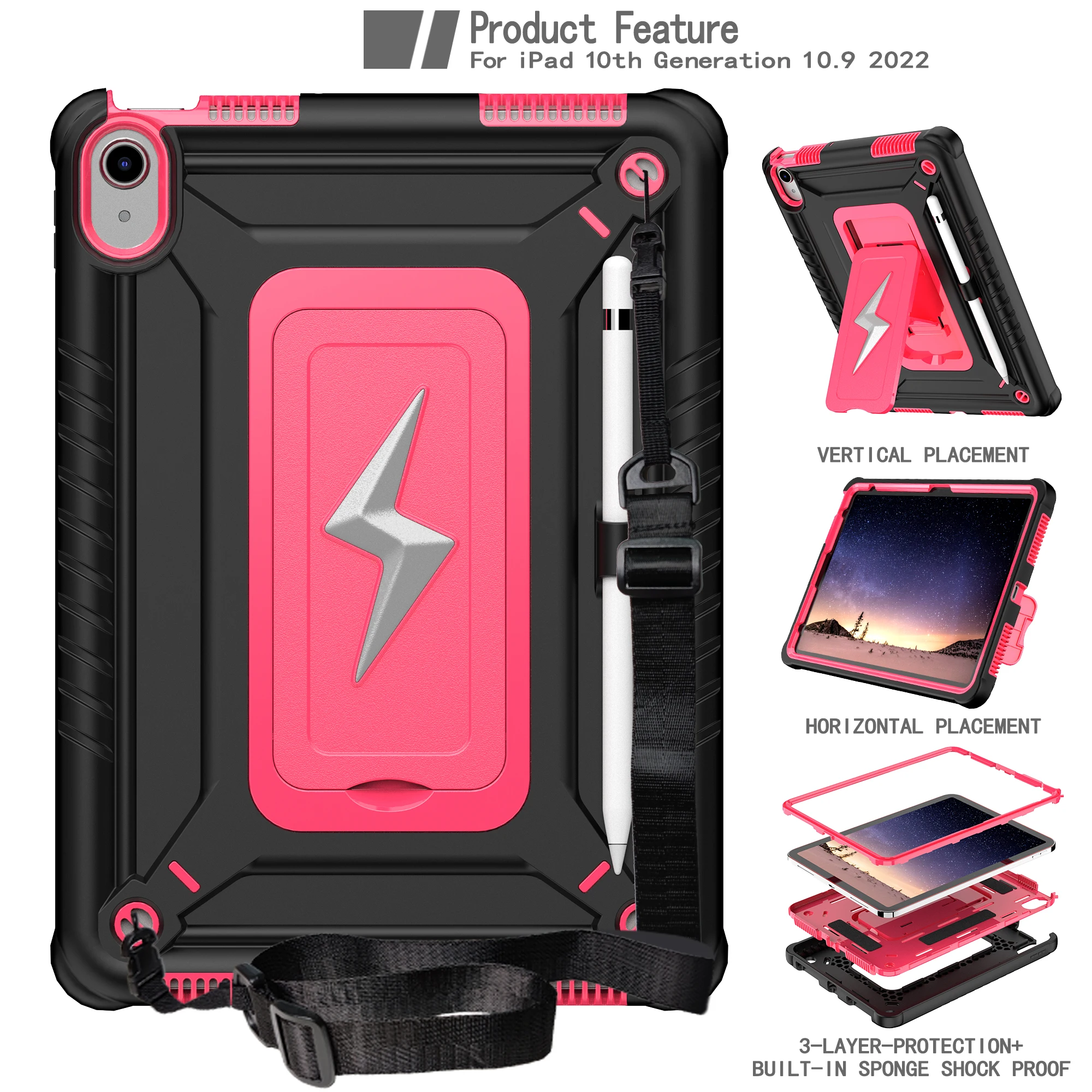 Funda armadura híbrida Universal para iPad 2025 11" A16 11a 10.9 2022 funda con soporte integrado de 10.a generación con correa para el hombro