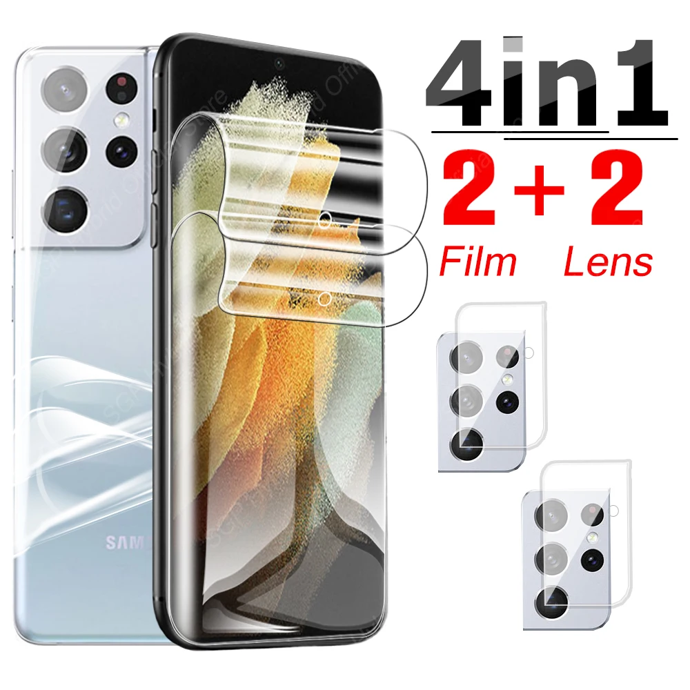 Comprar Funda de hidrogel 4 en 1 para Samsung Galaxy S21, S20 FE, 5G, S, 21 Plus, 5G, cubierta de pantalla, Note 20, protección de lente de cámara Ultra s22 ultra s 22 plus 5G