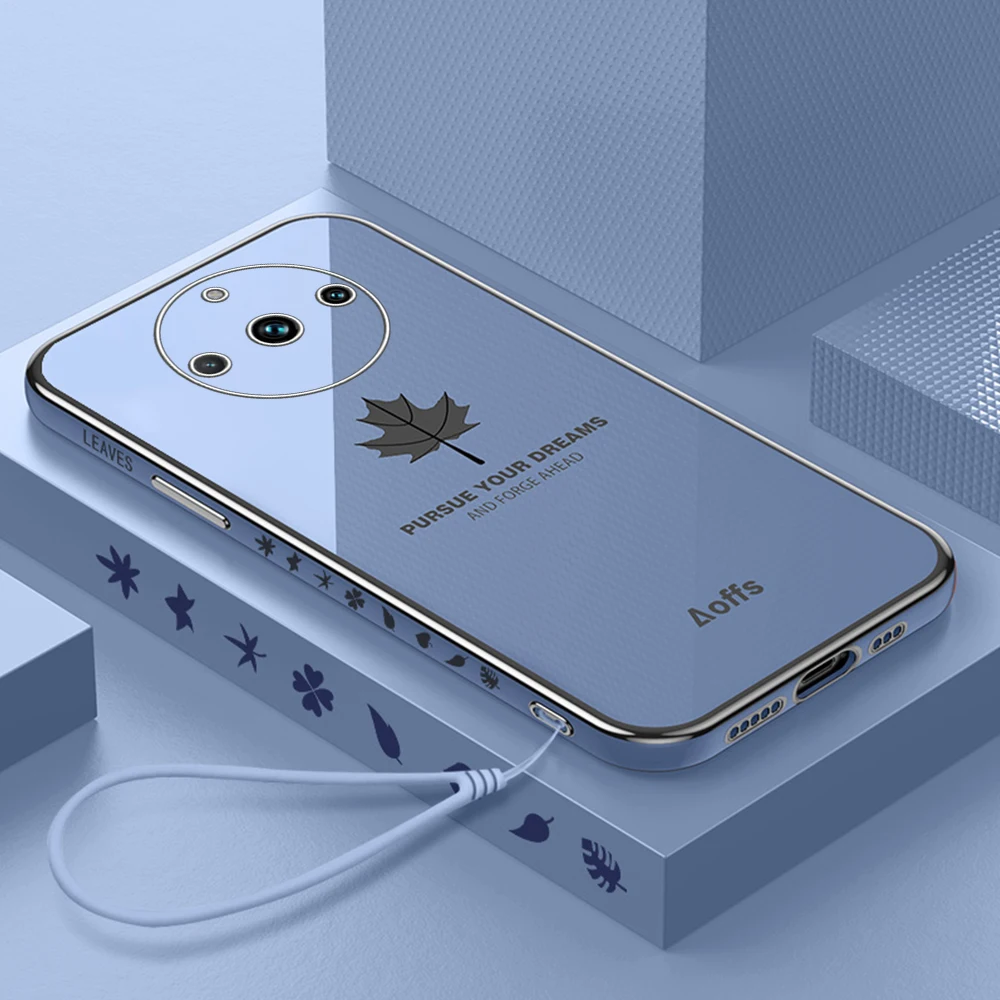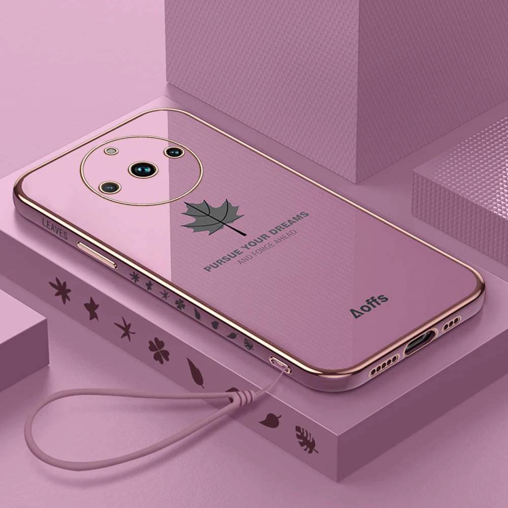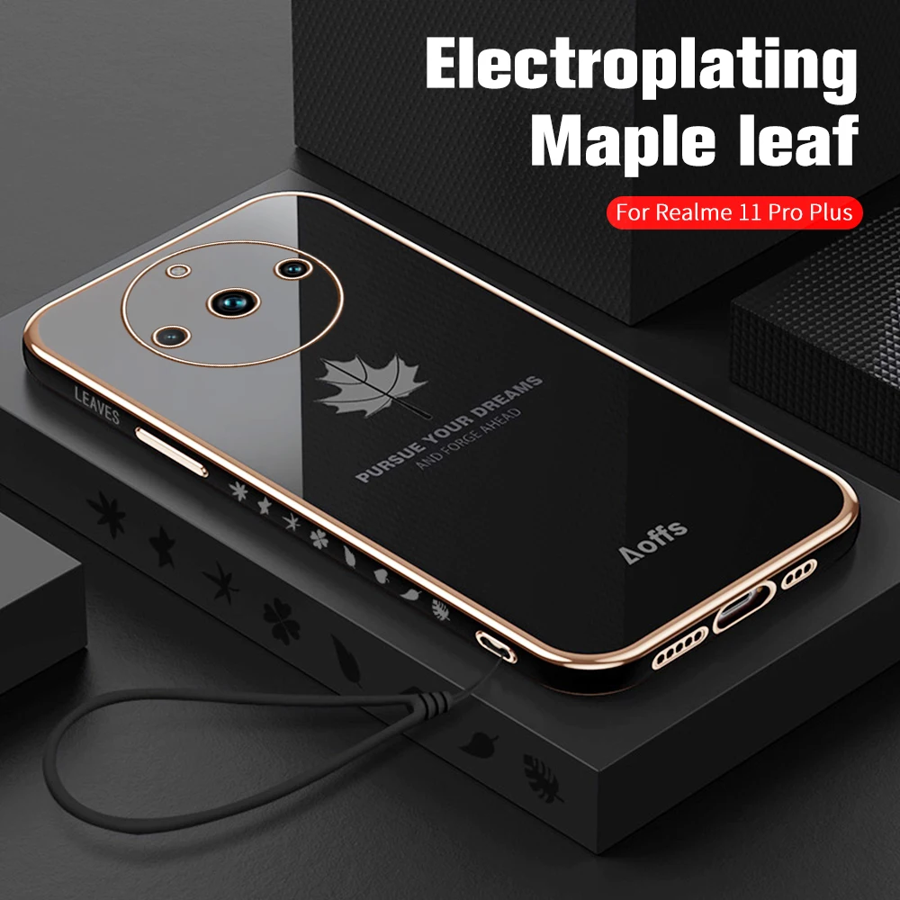 Para 11 Pro + Funda Maple Leaf Back Plating Soft TPU Coque Realme11 Pro Plus Realmy 11Pro 5G Camera Protection Lanyard Cover