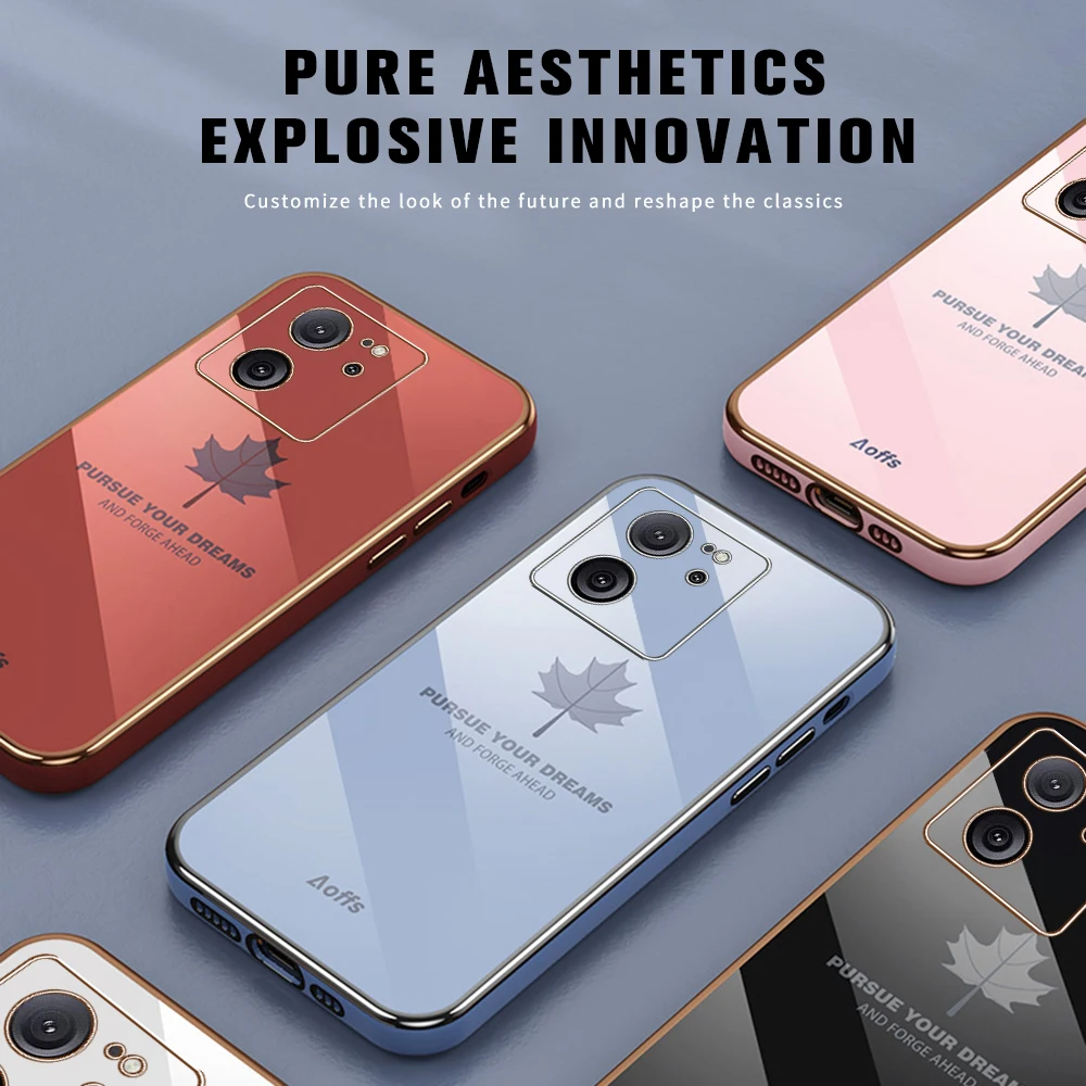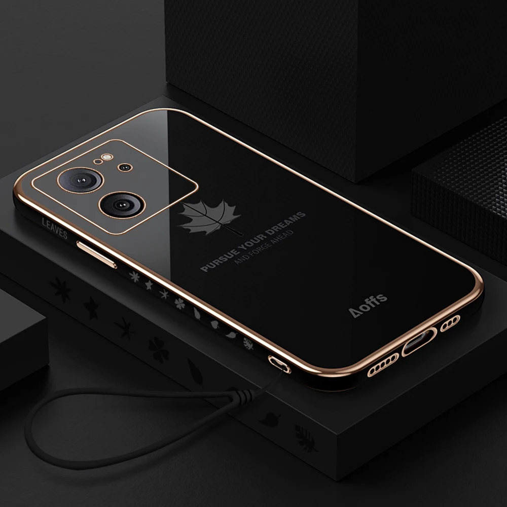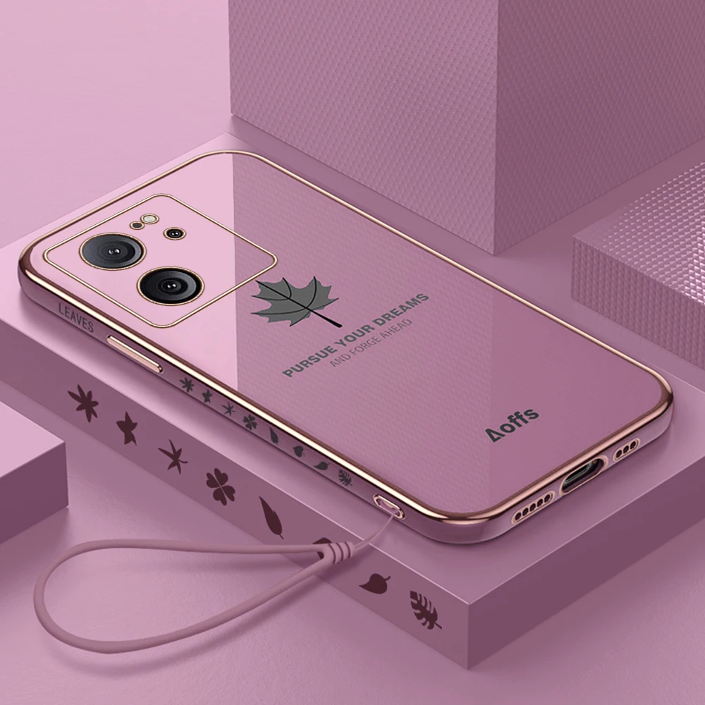 Funda blanda para Xiaomi 13 T Pro, funda blanda chapada en hoja de arce, Xaomy Mi 13TPro 13 T T13 Xiaomi13T Mi13T 5G, funda protectora con cordón para cámara