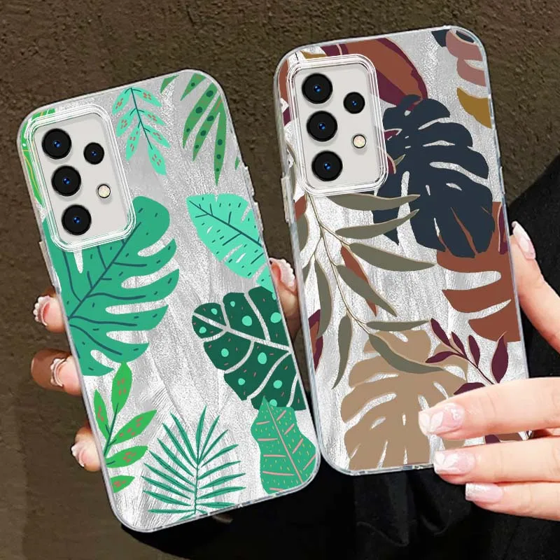 Comprar Funda de hojas de otoño para Samsung Galaxy A25 A24 A23 A22 A21S A15 A14 A13 A12 A06 A05 A04 funda de teléfono con textura de plumas