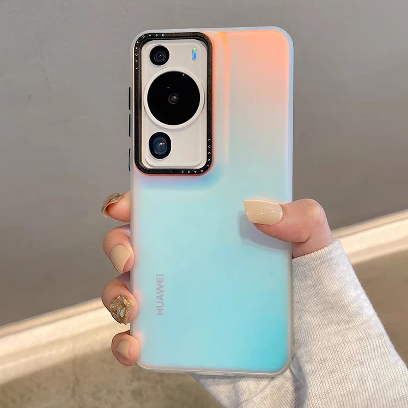 Comprar Funda holográfica Aurora para Huawei P60 Pro, P50, P40, P30 Pro, Mate 50, 40, 30 Pro, parachoques suave, cubierta de teléfono láser a prueba de golpes