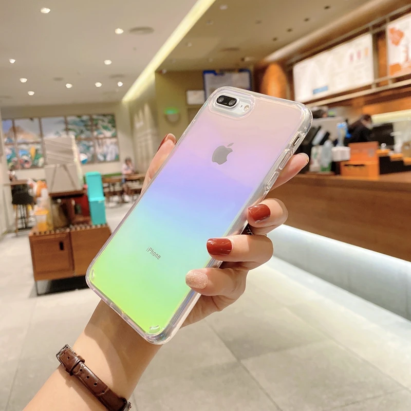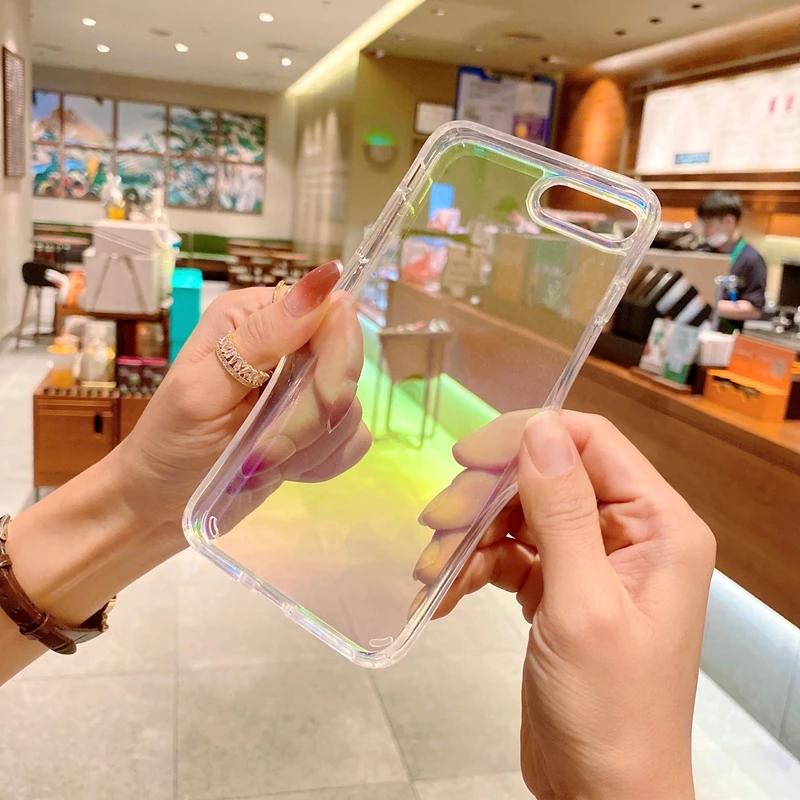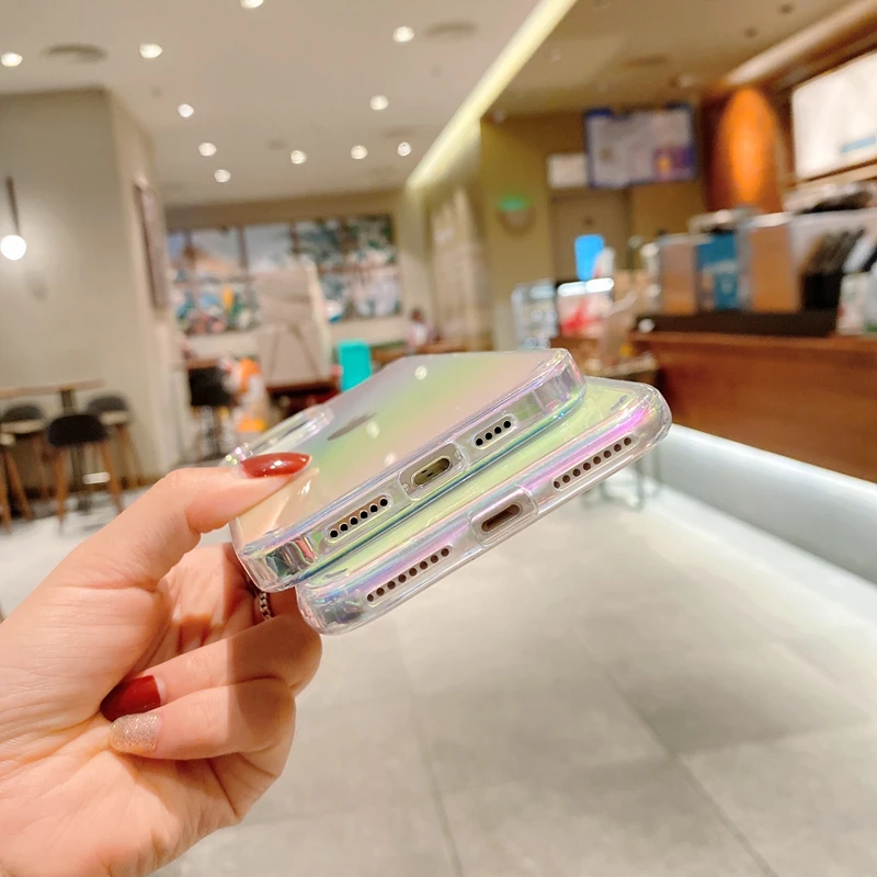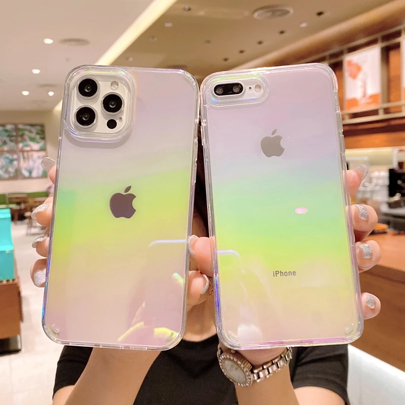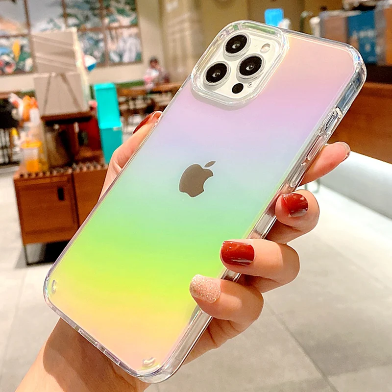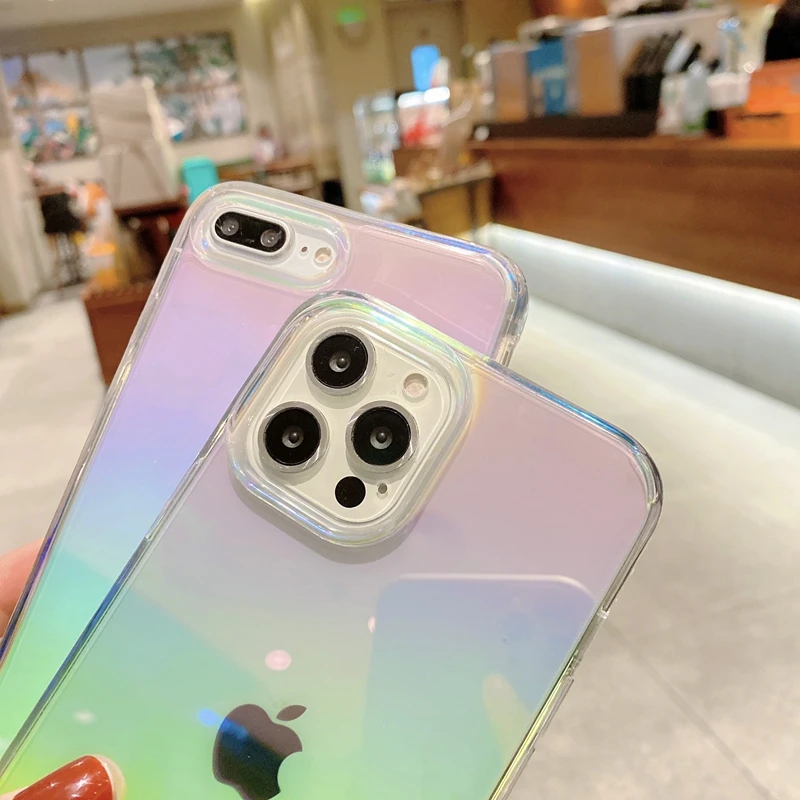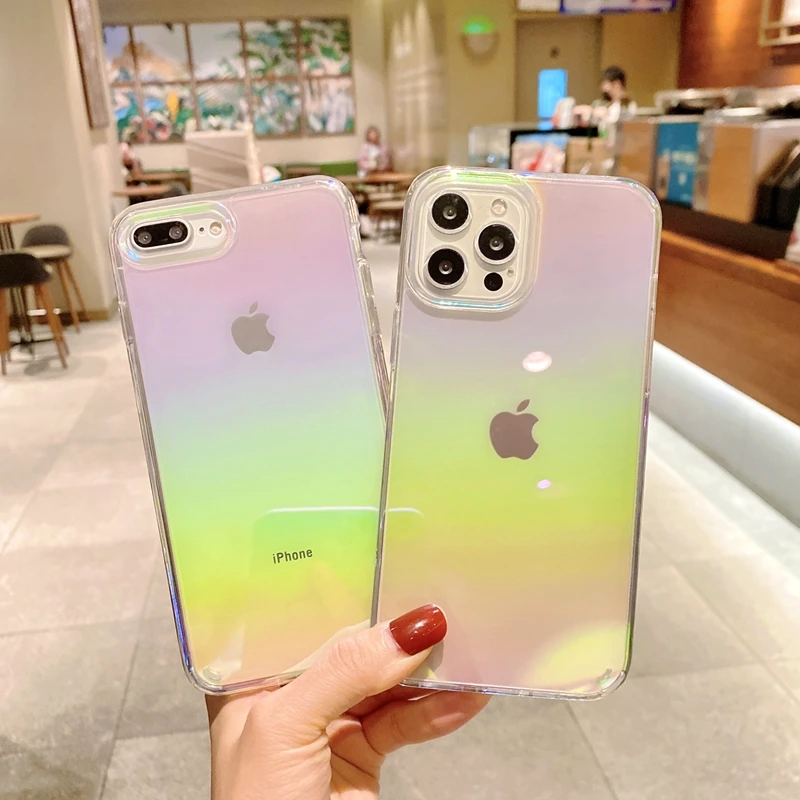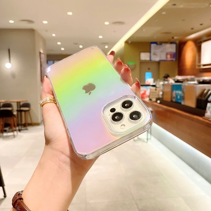 Comprar Funda holográfica láser para iPhone 15 Pro Max, 15, 14 Plus, 13, 12, 11, XS Max, XR, X, 7, 8 Plus, gradiente, arcoíris, cubierta de parachoques suave transparente