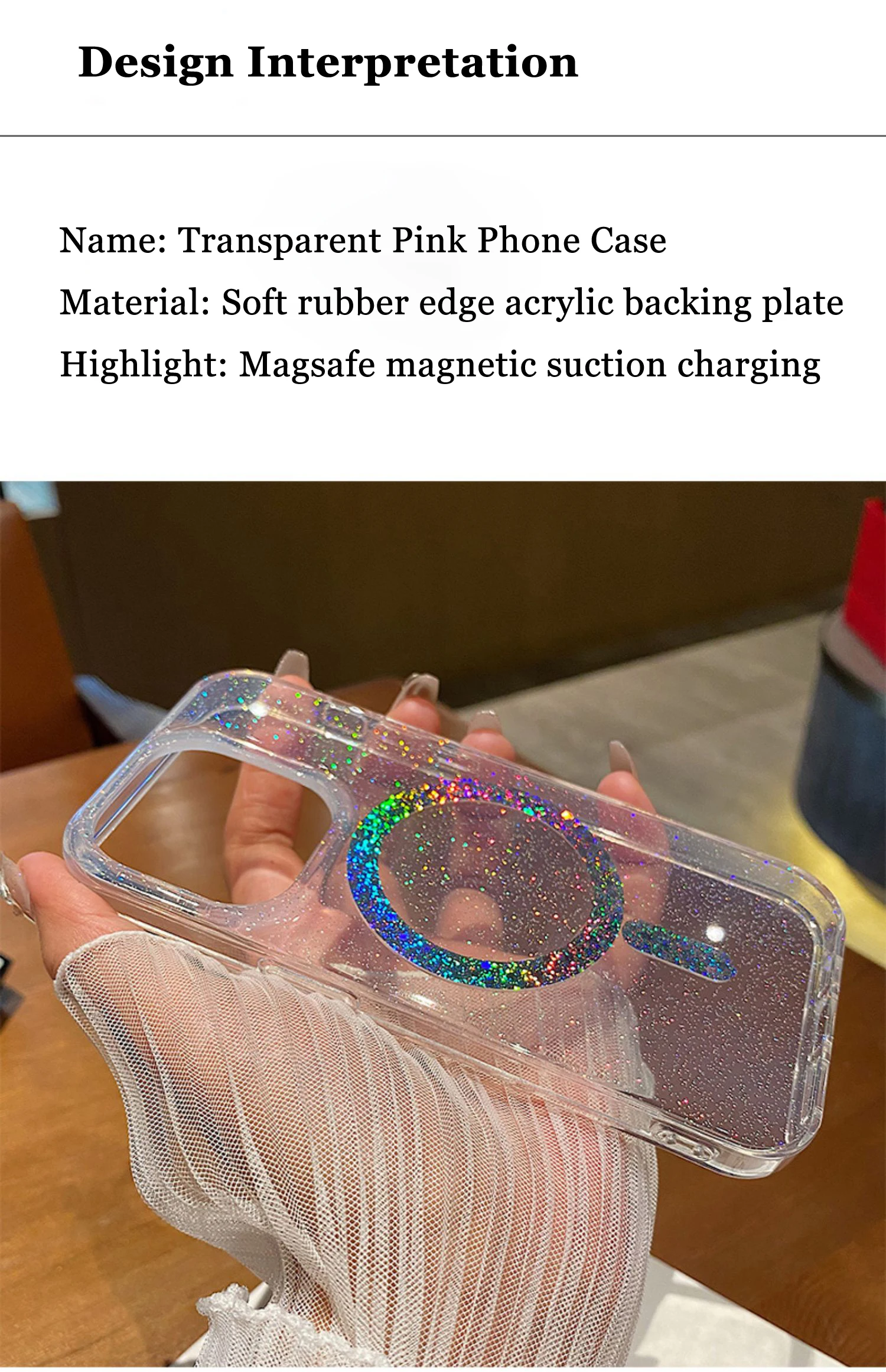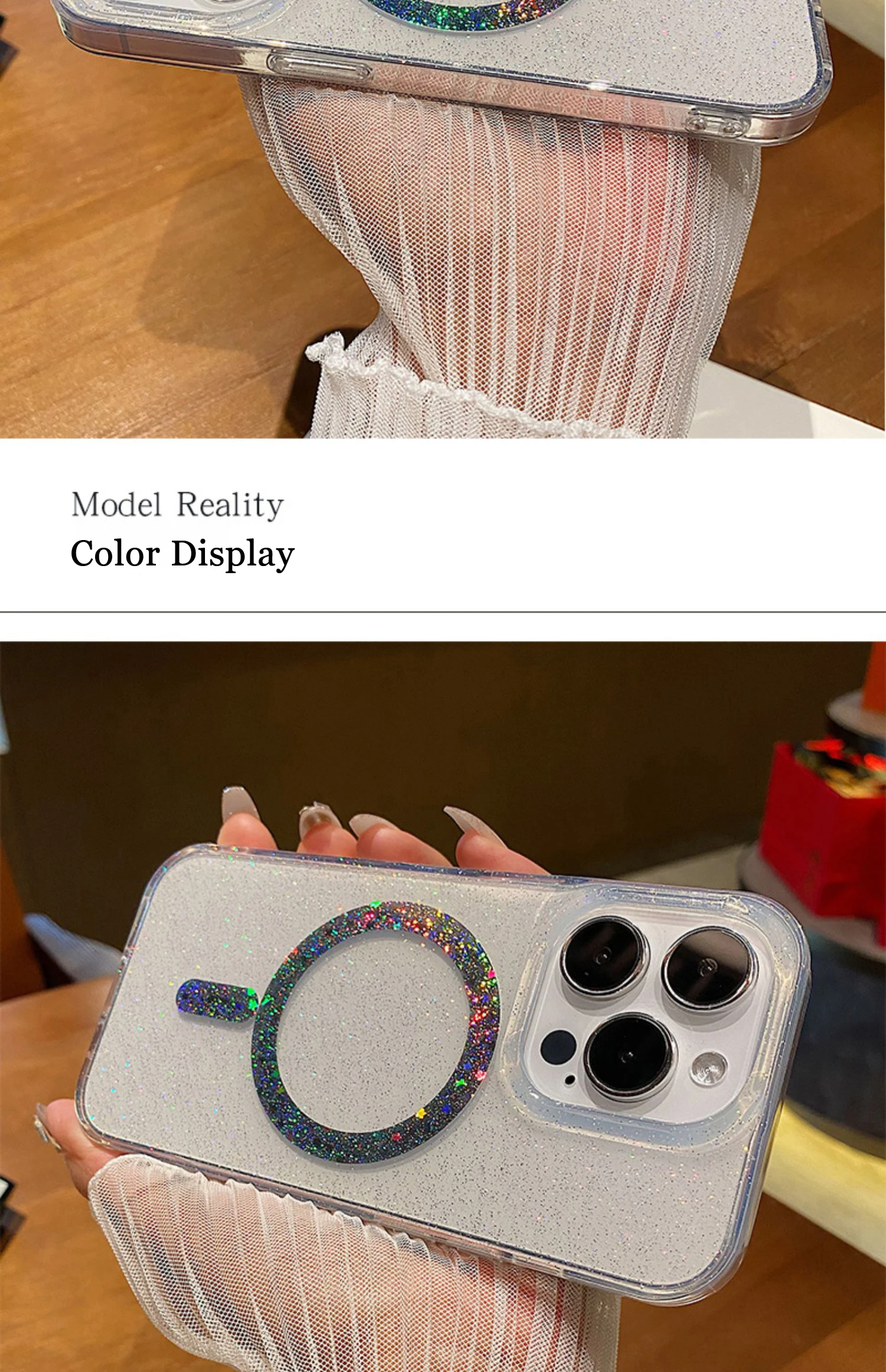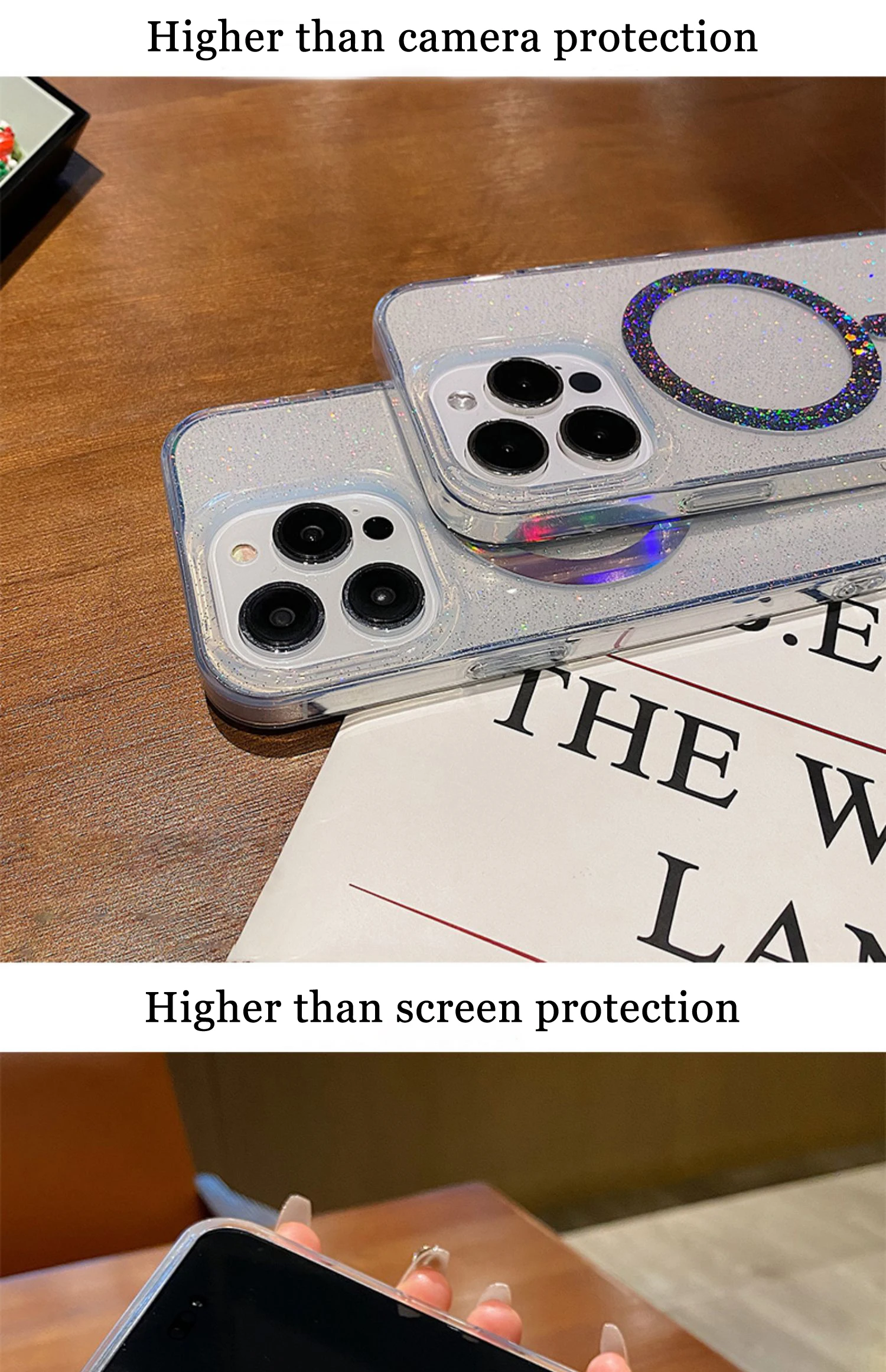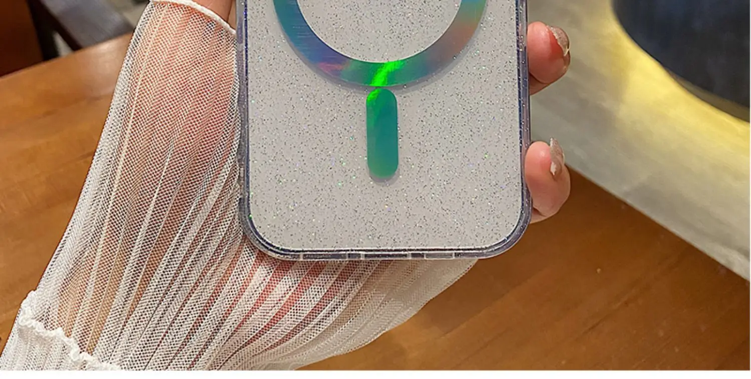 Comprar Funda holográfica magnética para iPhone 15 Pro Max, 11, 12, 13, 14 Pro Max, 14, 15 Plus, purpurina transparente para carga Magsafe, cubierta suave
