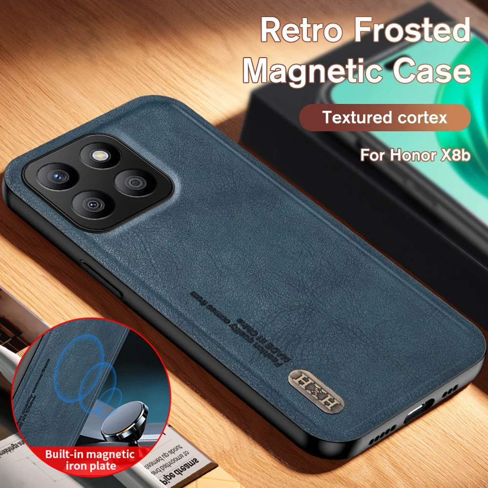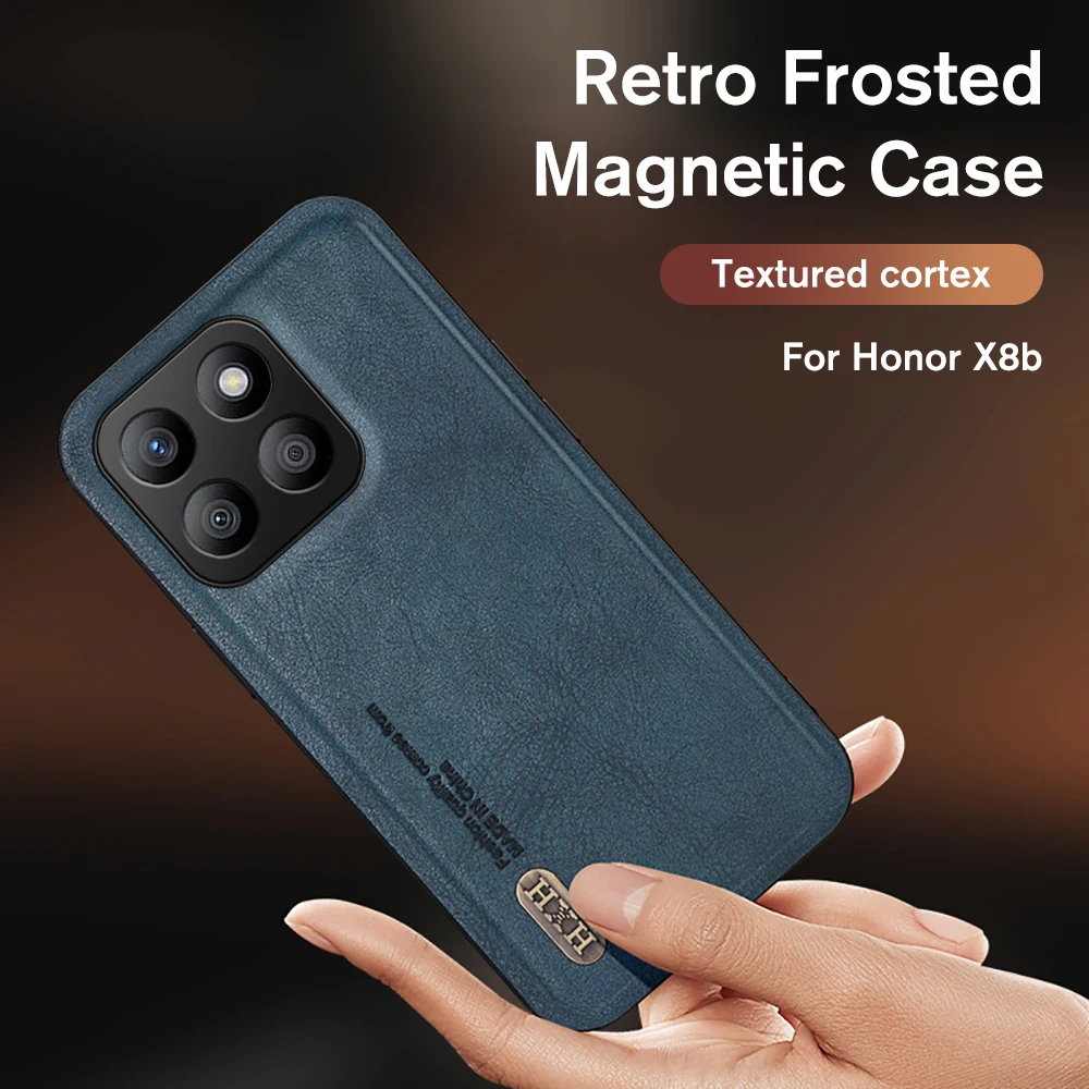 Honer X8b 4G funda Vintage de cuero mate funda trasera magnética para HonorX8b Honor X8b X 8B X8 b 4G TPU parachoques suave a prueba de golpes Coque