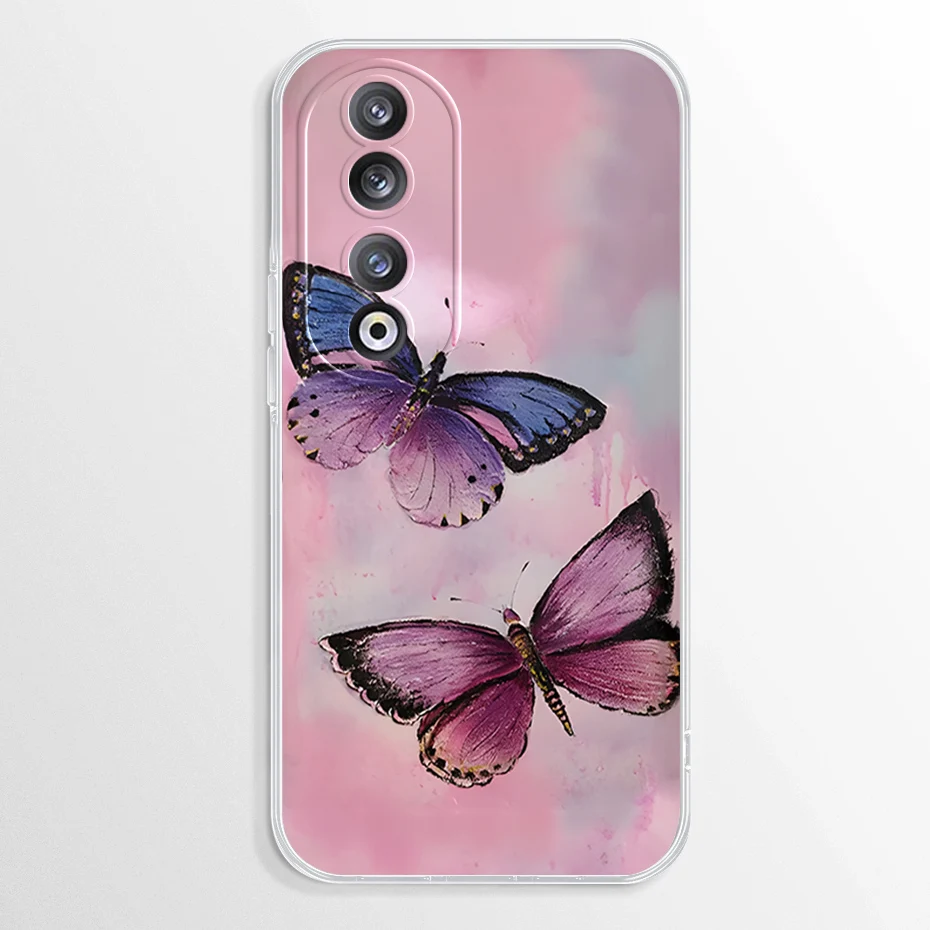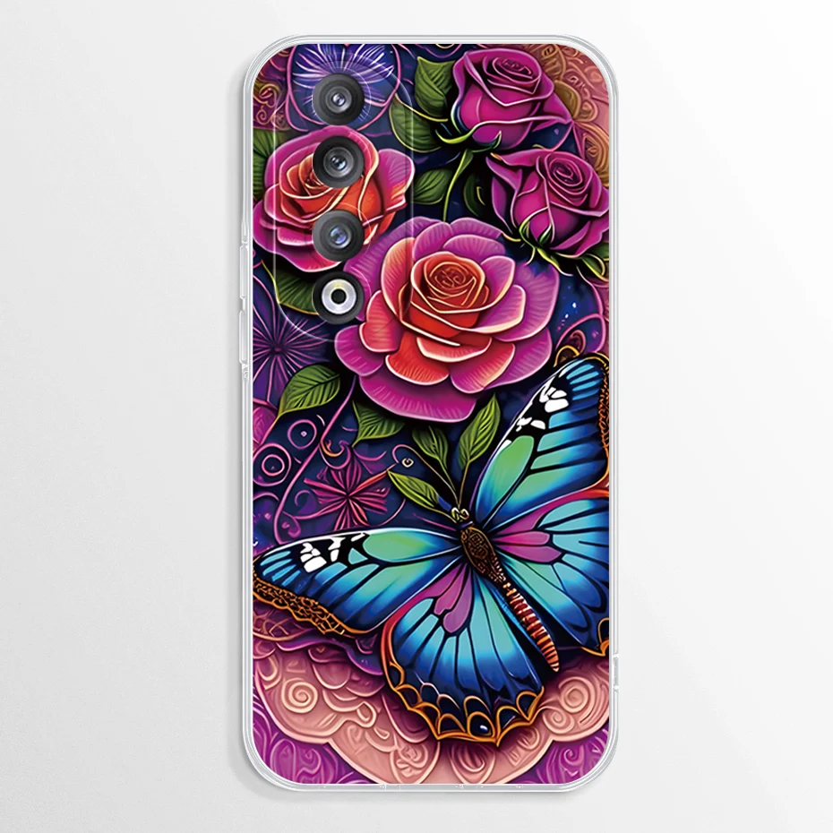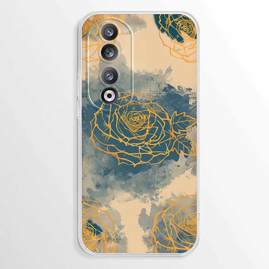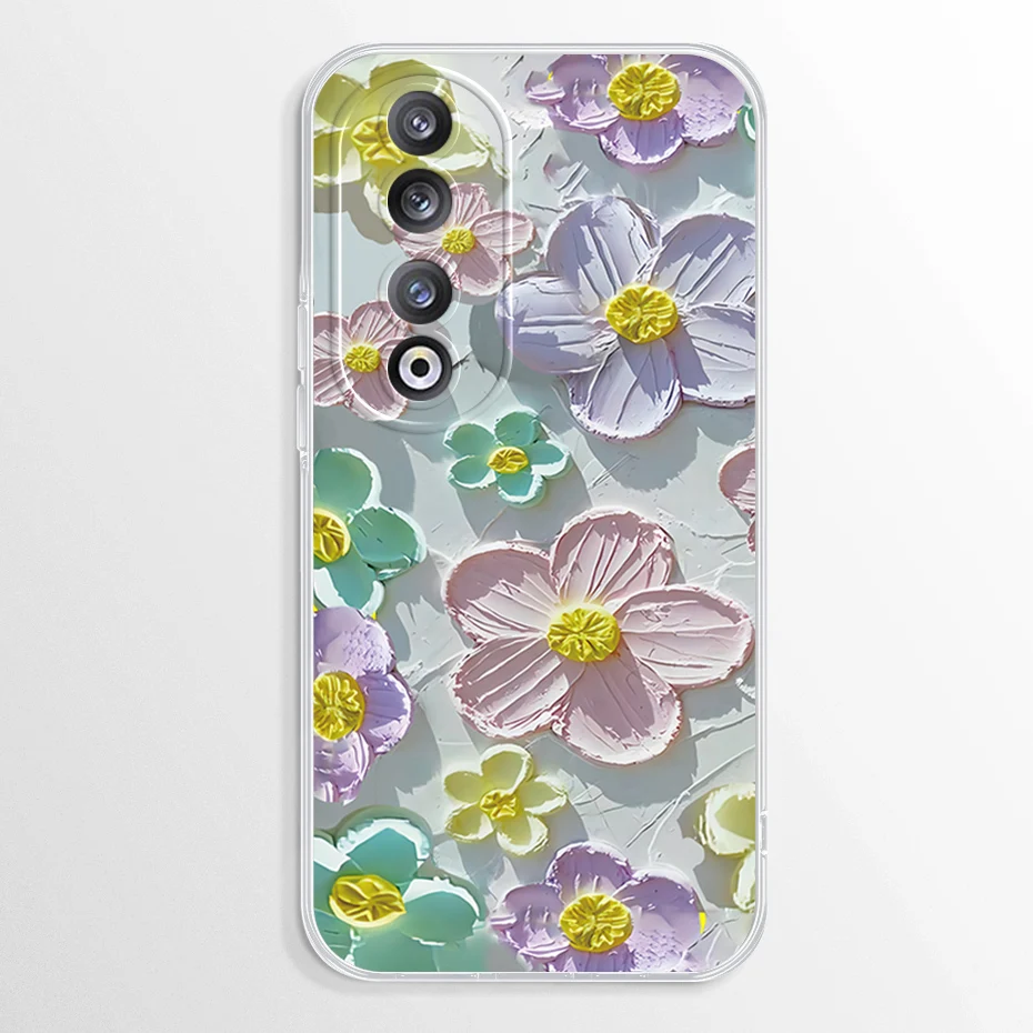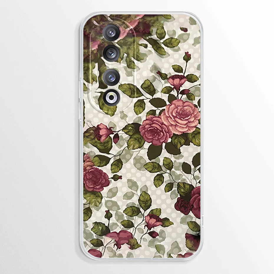 Comprar Funda para Honor 90 Pro, cubierta elegante de flores, transparente, TPU, silicona suave, parachoques para Huawei Honor 90 90Pro 5G