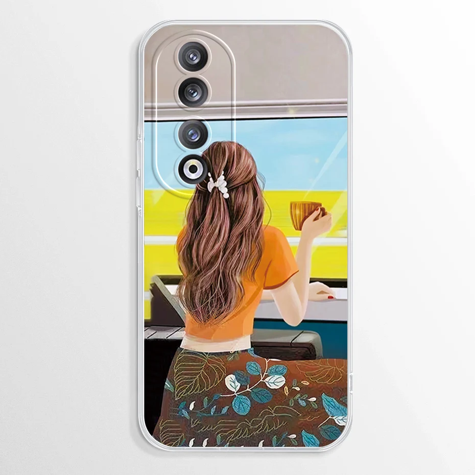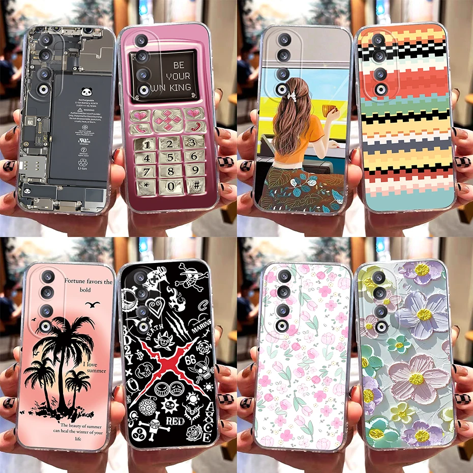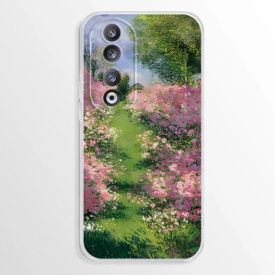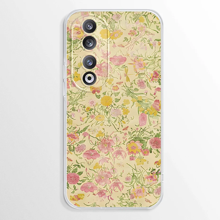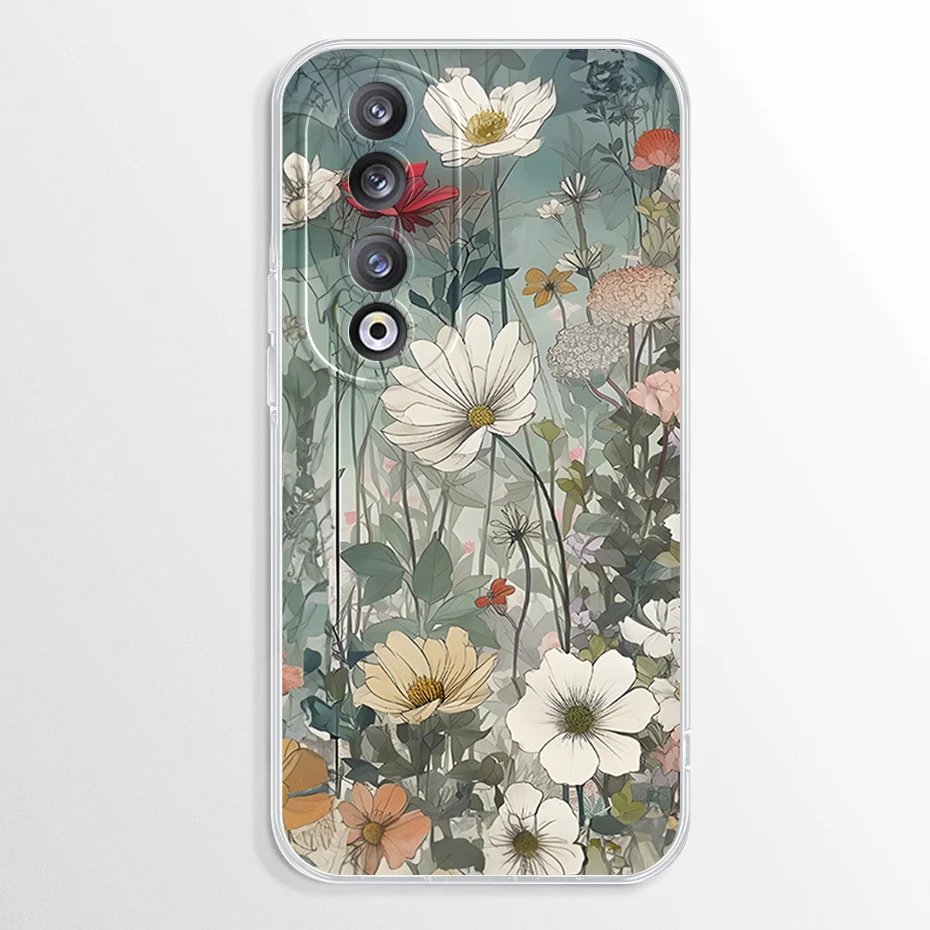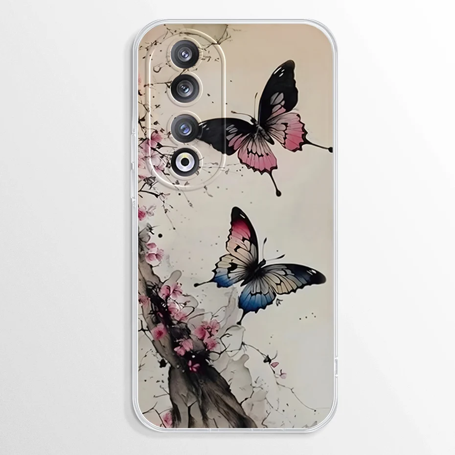 Comprar Funda para Honor 90 Pro, cubierta elegante de flores, transparente, TPU, silicona suave, parachoques para Huawei Honor 90 90Pro 5G