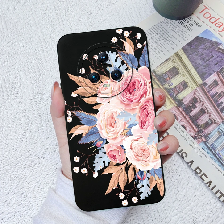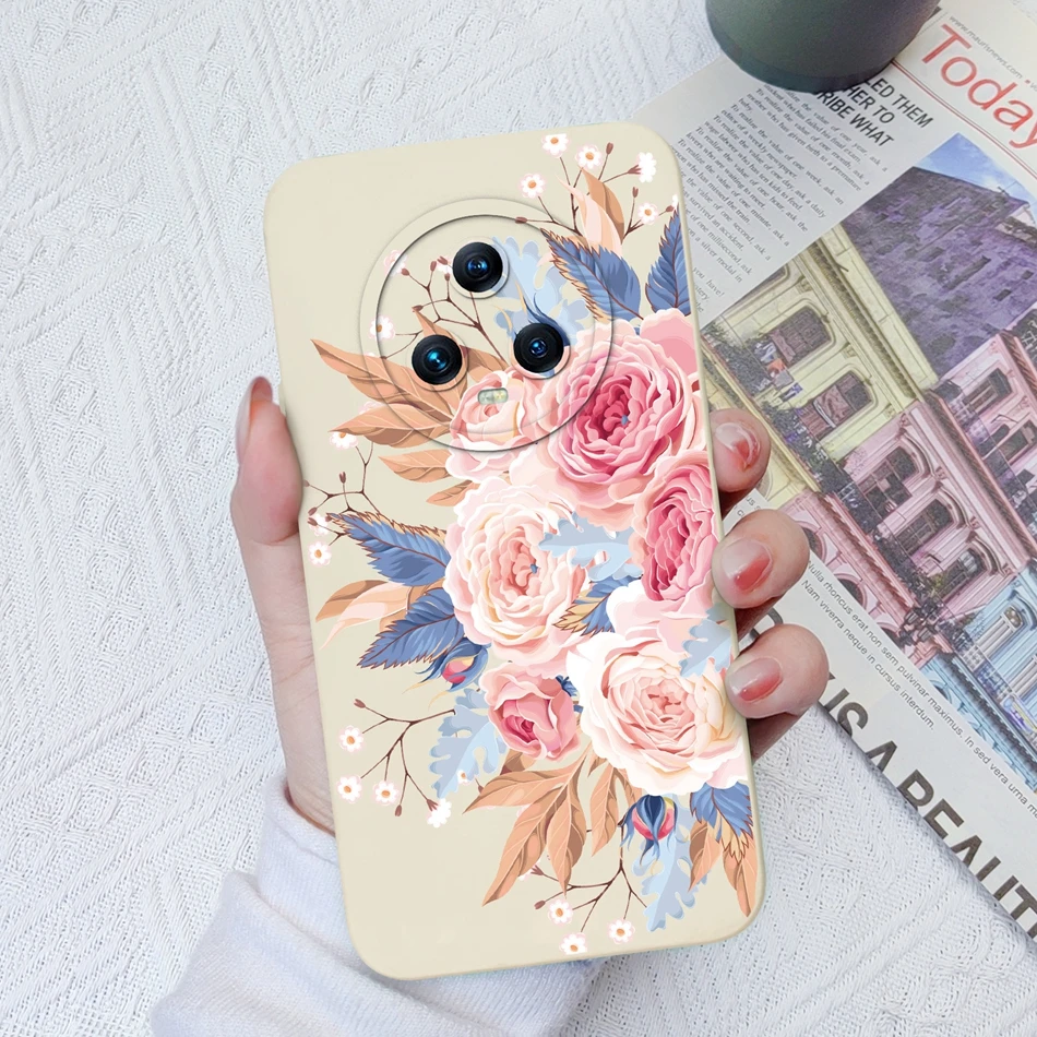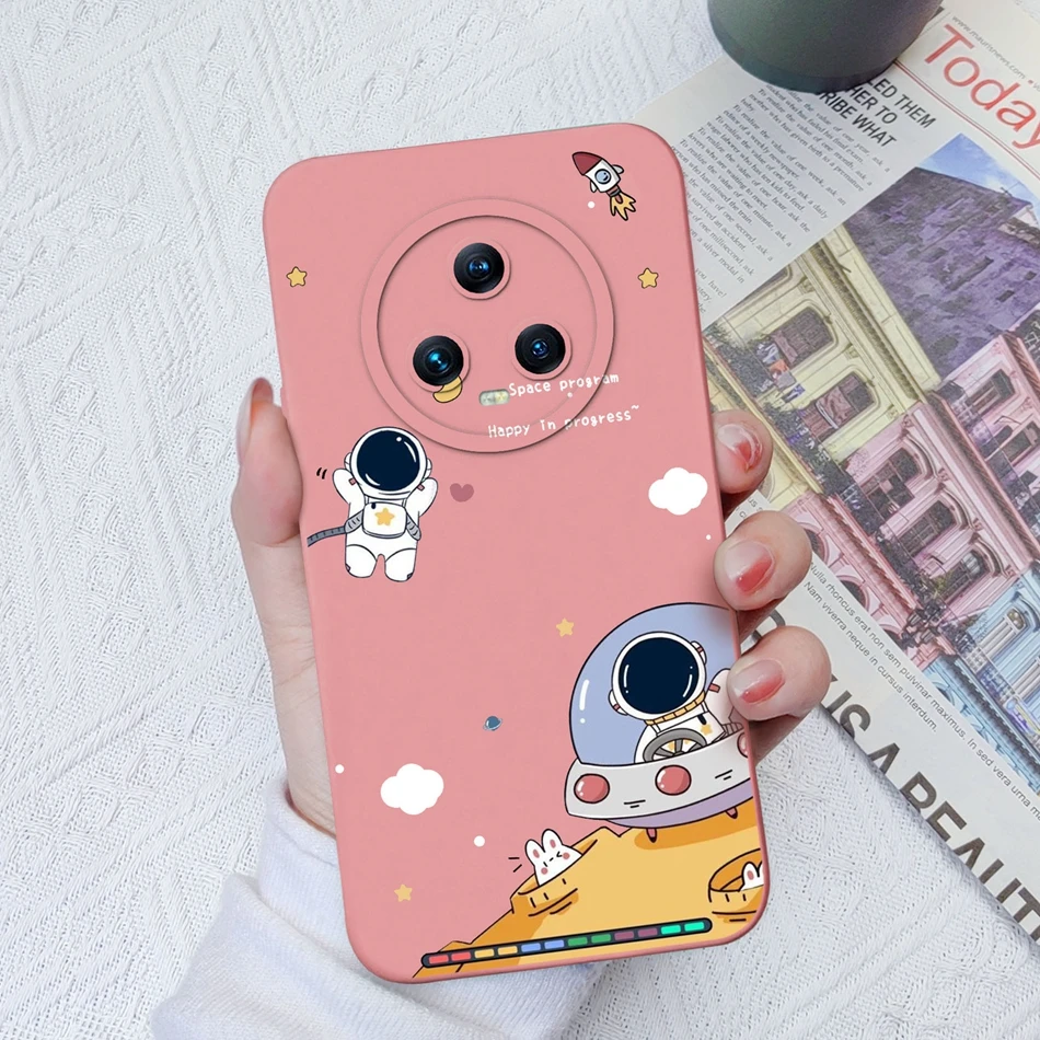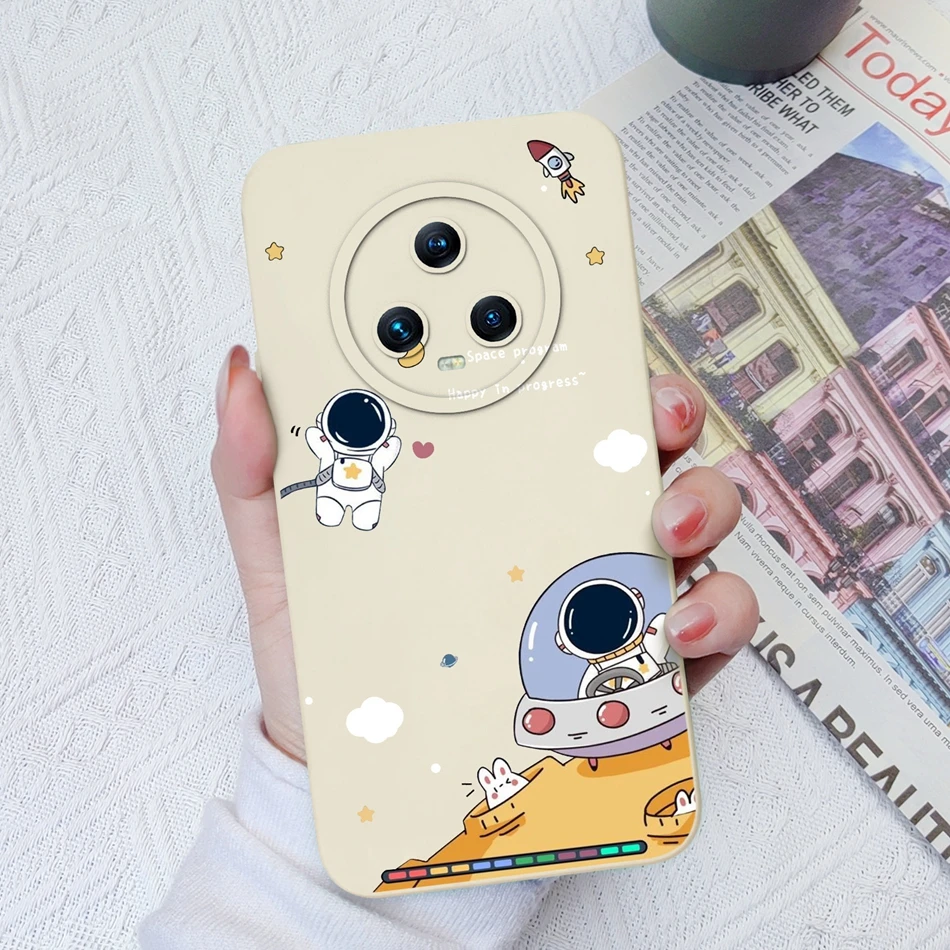 Funda para Huawei Honor Magic 5 Pro Flower Spaceman Cobertura completa Funda trasera de teléfono de silicona líquida para Honor Magic5 Pro Funda Capa
