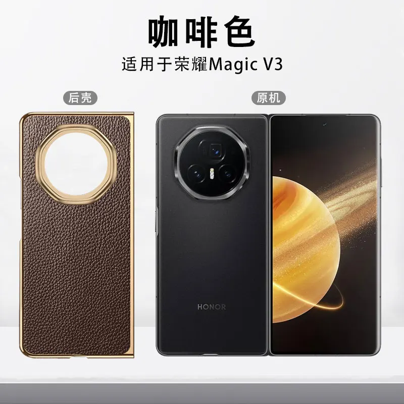 Comprar Funda para Honor Magic V3, Funda trasera de cuero de lujo con borde galvanizado para Honor Magic3, parachoques fino a prueba de golpes, Funda HonorMgaicV3