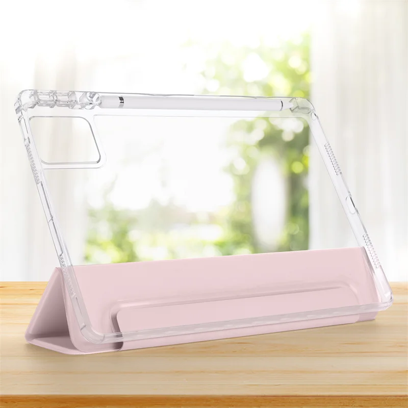 Para Honor Pad 10 funda con portalápices triple de cuero PU acrílico transparente funda dura trasera para Honor Pad 10 funda para tableta de 12,1 pulgadasDescripción: