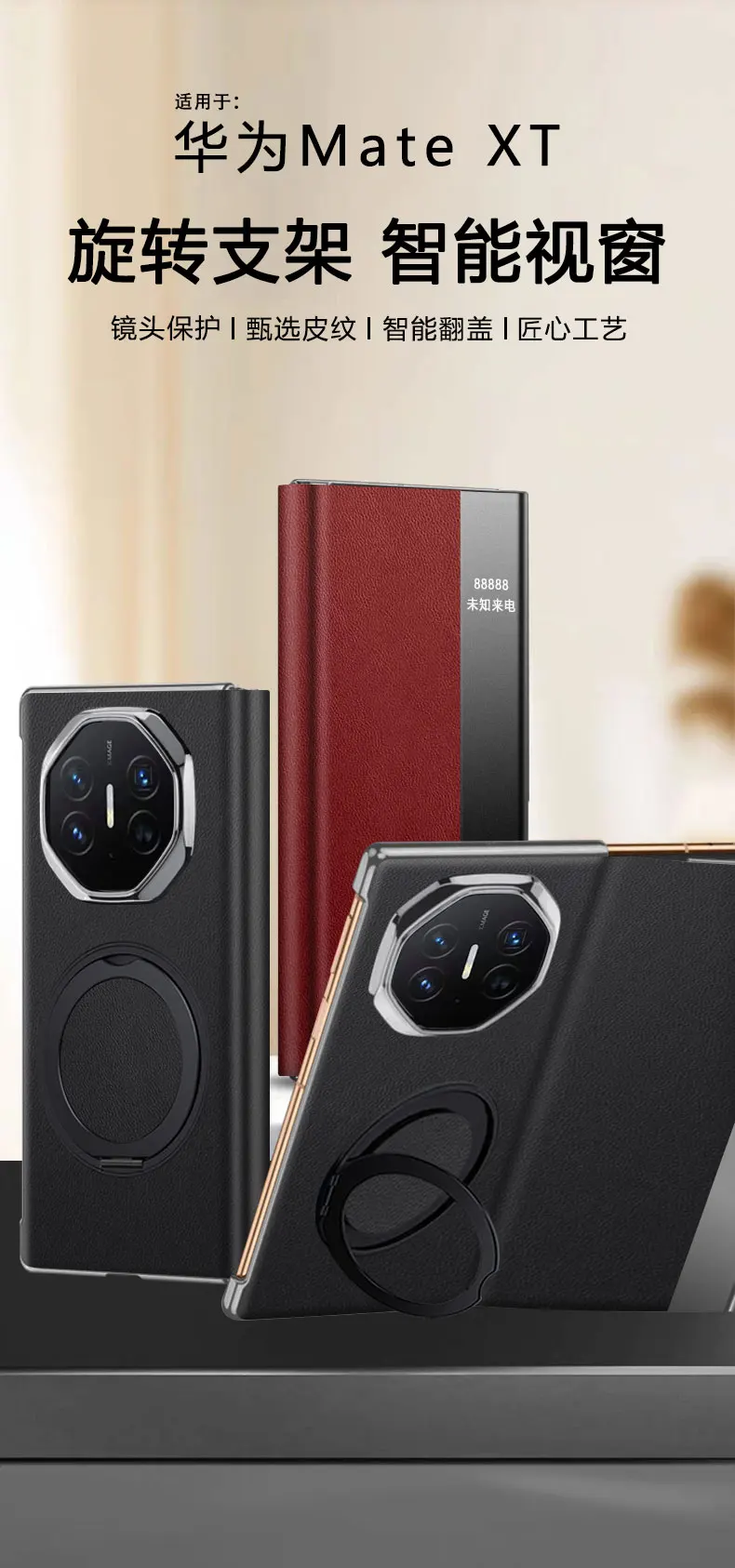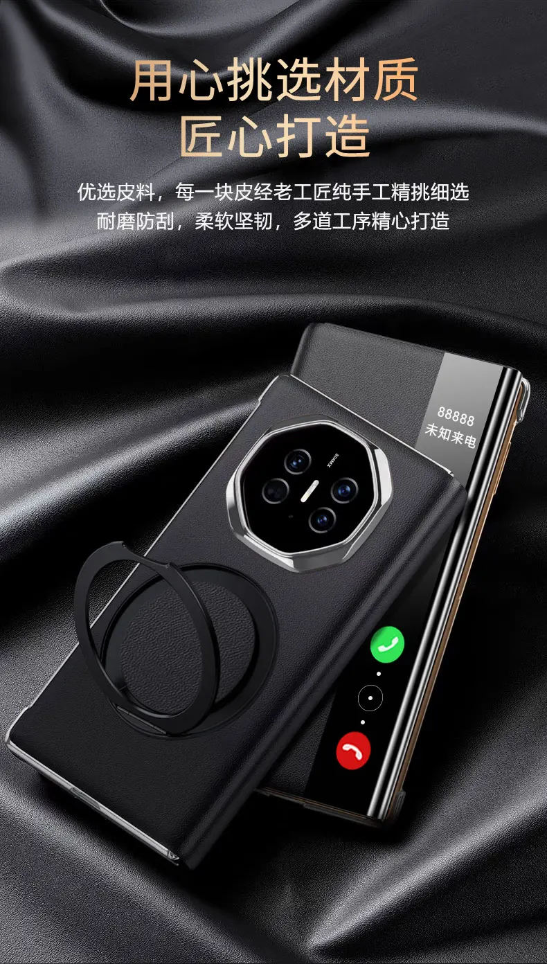 Para Huawei Mate XT Ultimate Funda de cuero de lujo anillo imán cubierta de teléfono plegable para Mate XT parachoques a prueba de golpes Funda
