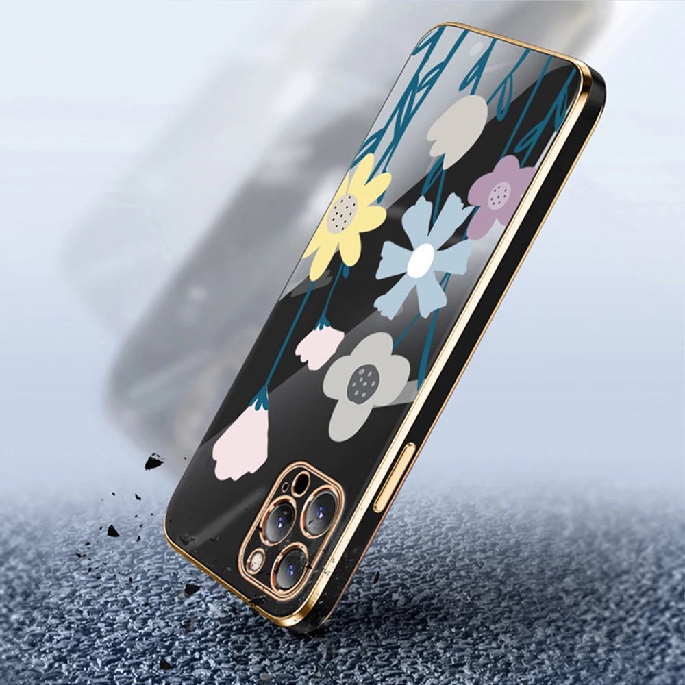 Comprar Funda para Huawei nova Y90, carcasa de lujo con Protector de lente, cubierta de flores chapada en silicona