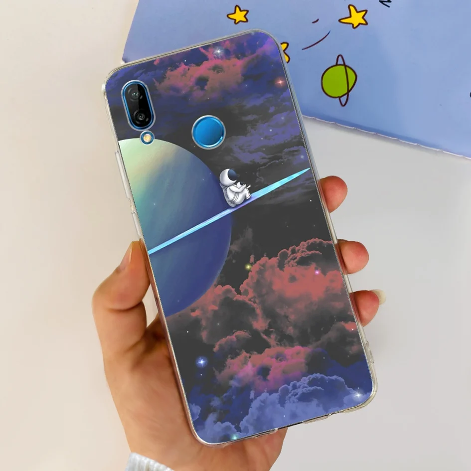 Funda para Huawei P20 Lite, funda bonita de dibujos animados de astronauta, funda de silicona suave trasera transparente delgada para Huawei P20Lite, Funda de teléfono para Huawei P20Lite, Funda de la parte trasera de la piel