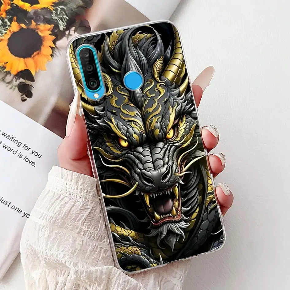 Funda para Huawei P30 Lite 2020, funda MAR-LX1A Cool Dragon Lion Tiger, funda suave de silicona con dibujos animados para Huawei P30Lite Nova4e, parachoques