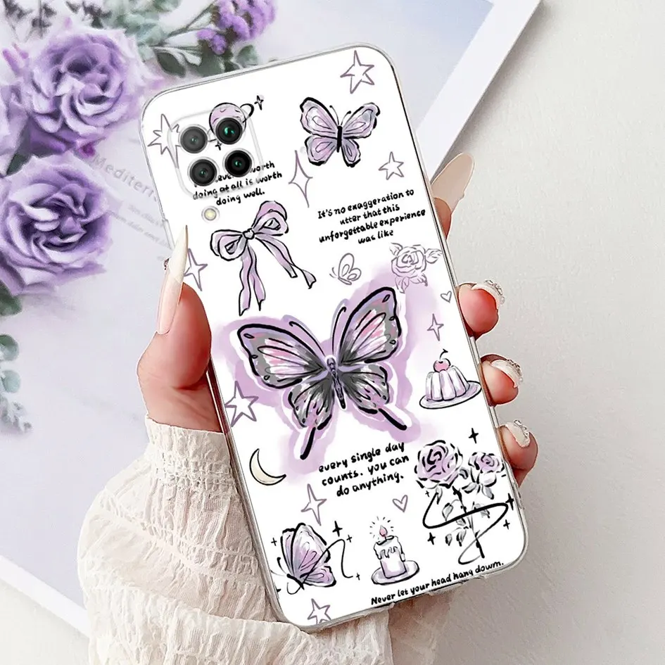 Funda para Huawei P40 Lite Nova 7i, funda Popular de mariposa con flor, parachoques de silicona suave a prueba de golpes para Huawei Nova 6 SE Nova7i Capa