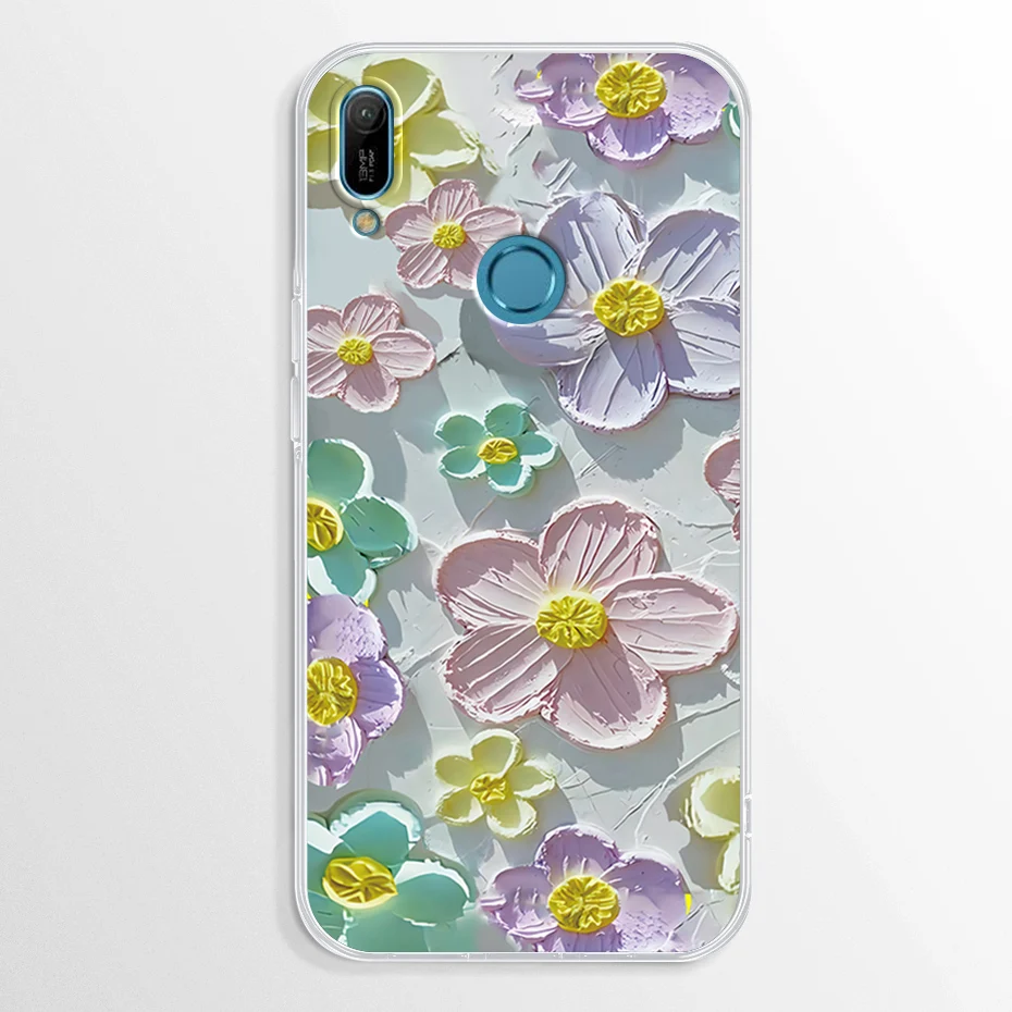 Funda para Huawei Y6 2019, carcasa con patrón de flores, transparente, suave, TPU, silicona, parachoques, Huawei Y6s 2019, Huawei Y6S 2019