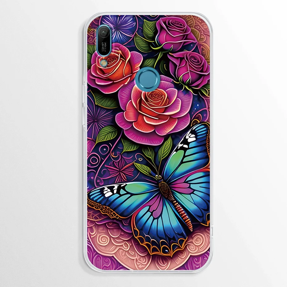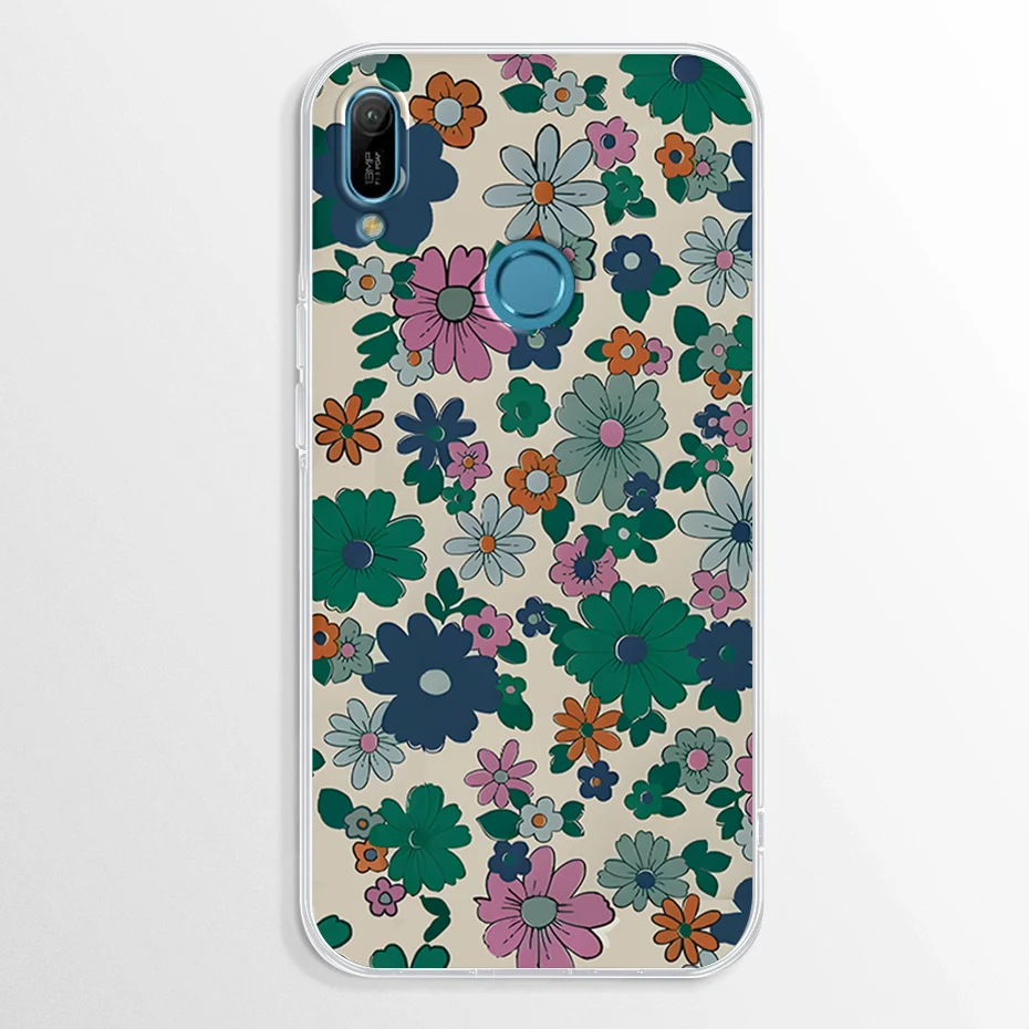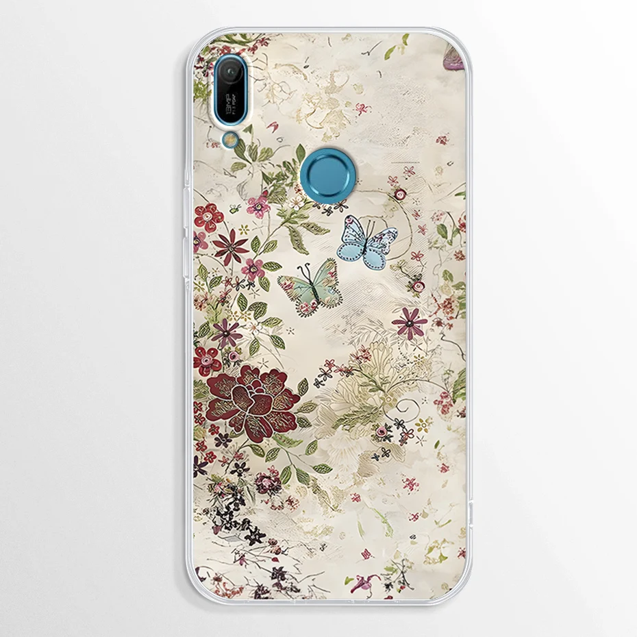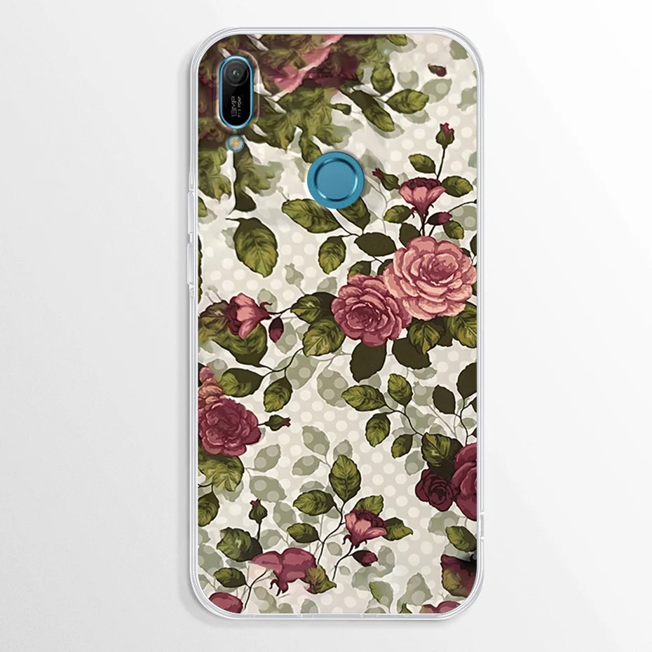 Para Huawei Y6 2019 funda Huawei Y6s 2019 Capas patrón de flores transparente suave TPU silicona parachoques Coque HuaweiY6 Y6S 2019 funda