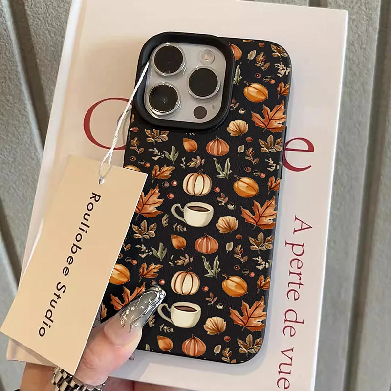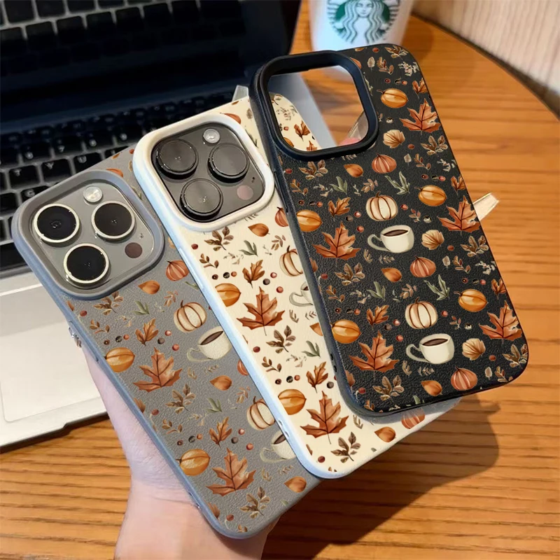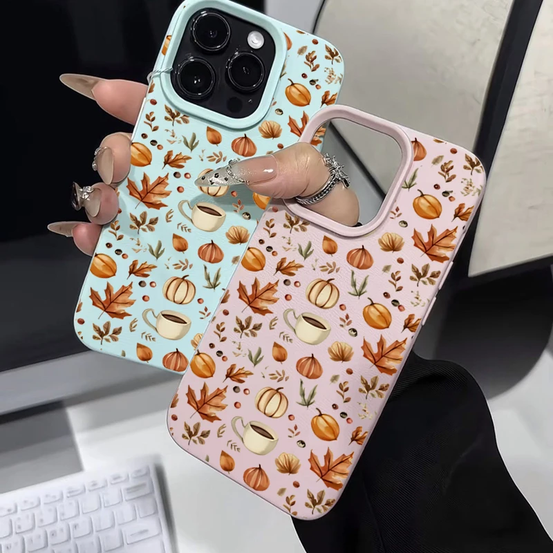 Funda de ilustración de café con calabaza de otoño para iPhone 16 15 14 Plus 11 12 13 17 Pro Max, funda para iPhone 17 Air 16E X XR XS