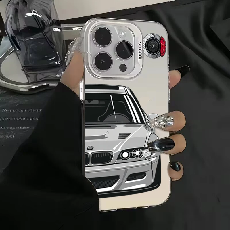 Funda IMD plateada con electrochapa y estampado de coche a la moda para Xiaomi Redmi Note 14 13 12 11 10 Pro Plus 5G 12S 11 Redmi 14C 12 4G