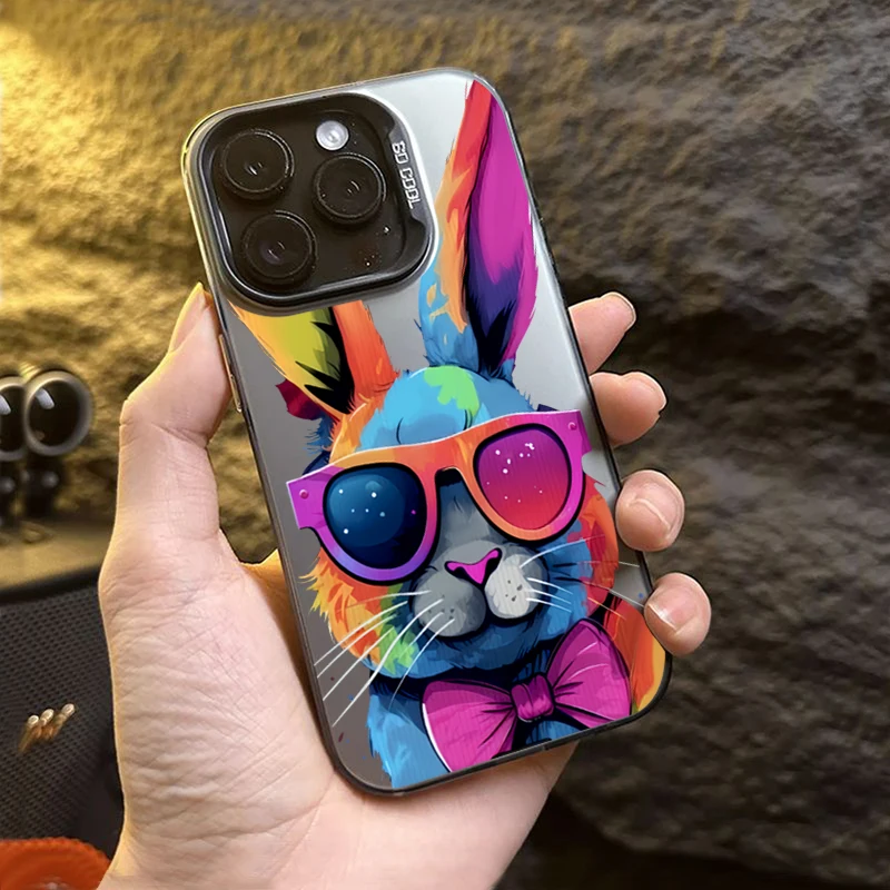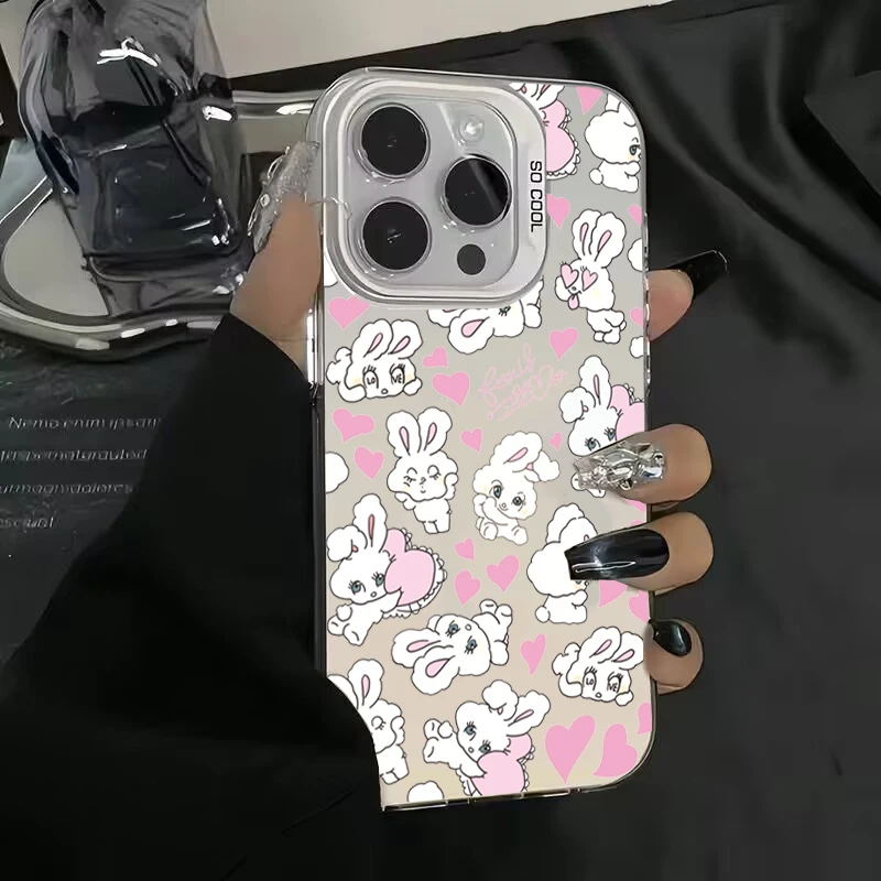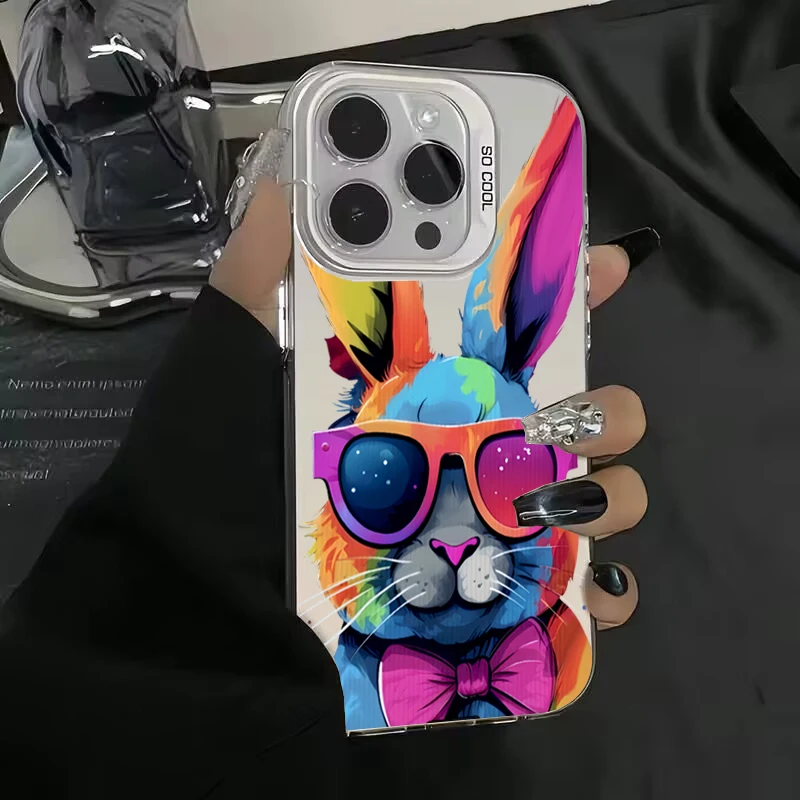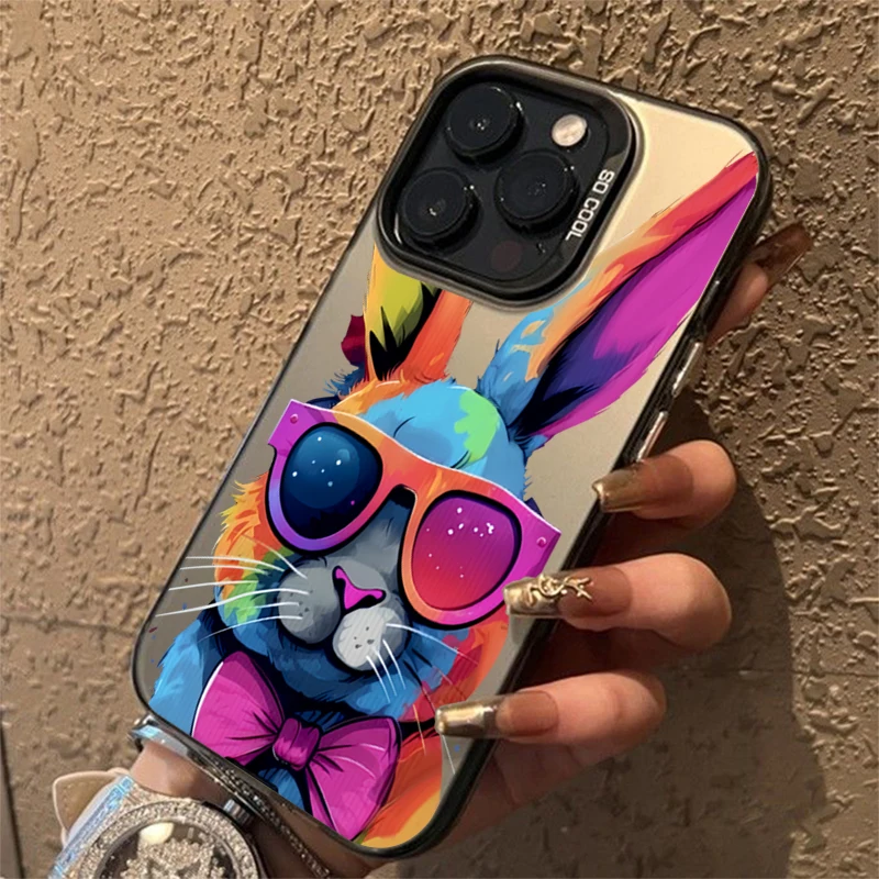 Funda IMD plateada con electrochapa de conejo colorido lindo para Samsung Galaxy A14 A34 A13 A23 A52 S24 S23 S22 S21 Ultra Plus S20 FE