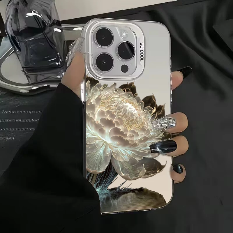 Luxury Lotus Flower Electroplate Silver IMD Case For Xiaomi Poco F5 X5 X6 Pro Mi 14 13 12 12T 13T Pro 11 Lite 5G NE Back Cover