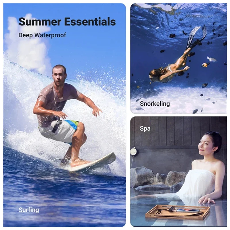 • Práctica funda protectora subacuática para teléfono:Le permite mantener su teléfono seguro y de fácil acceso mientras nada o realiza actividades acuáticas.
