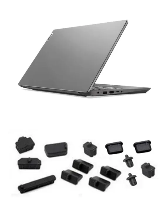 Cubierta de puerto de silicona negra para ordenador portátil a prueba de polvo para 2022 V14 G2(Sin enchufe para alimentación, bloqueo e interfaces especiales)