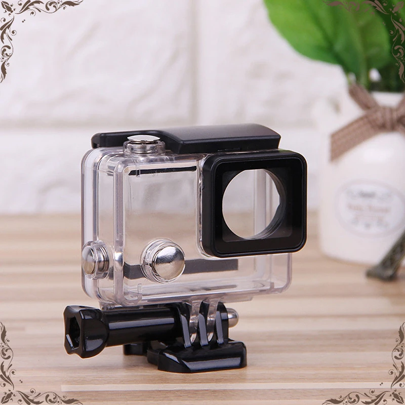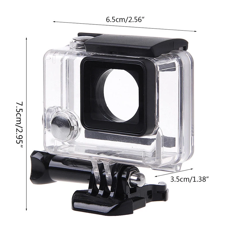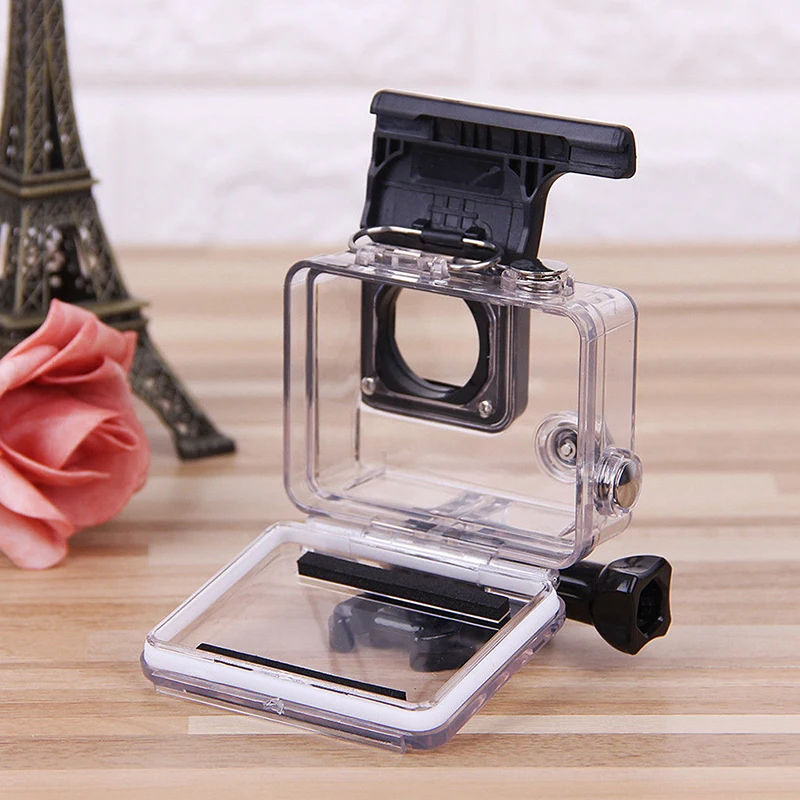 Esta es una carcasa impermeable transparente, especialmente diseñada para la cámara deportiva al aire libre GoPro Hero 4. Con esta carcasa impermeable puedes utilizar perfectamente la cámara bajo el agua material transparente alto puede mantener una buena toma de fotos.