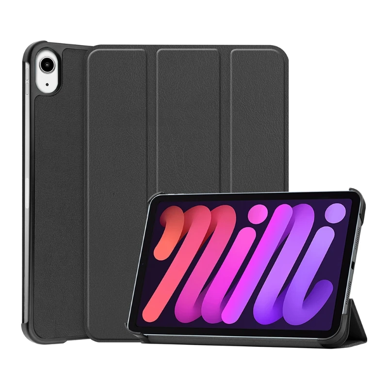 D7YC Soporte de cuerpo completo Funda de cuero Trifold Soporte de color sólido para iPad Mini 6 Cuero de PU con función de despertador/reposo automático