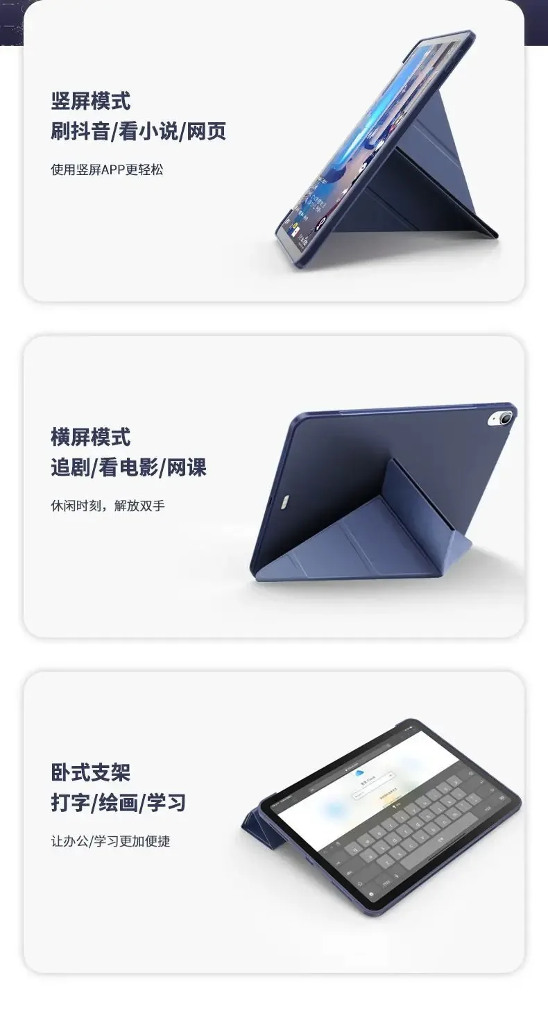 [Diseño de soporte triple]: el diseño plegable magnético triple permite modos de soporte de visualización y escritura.