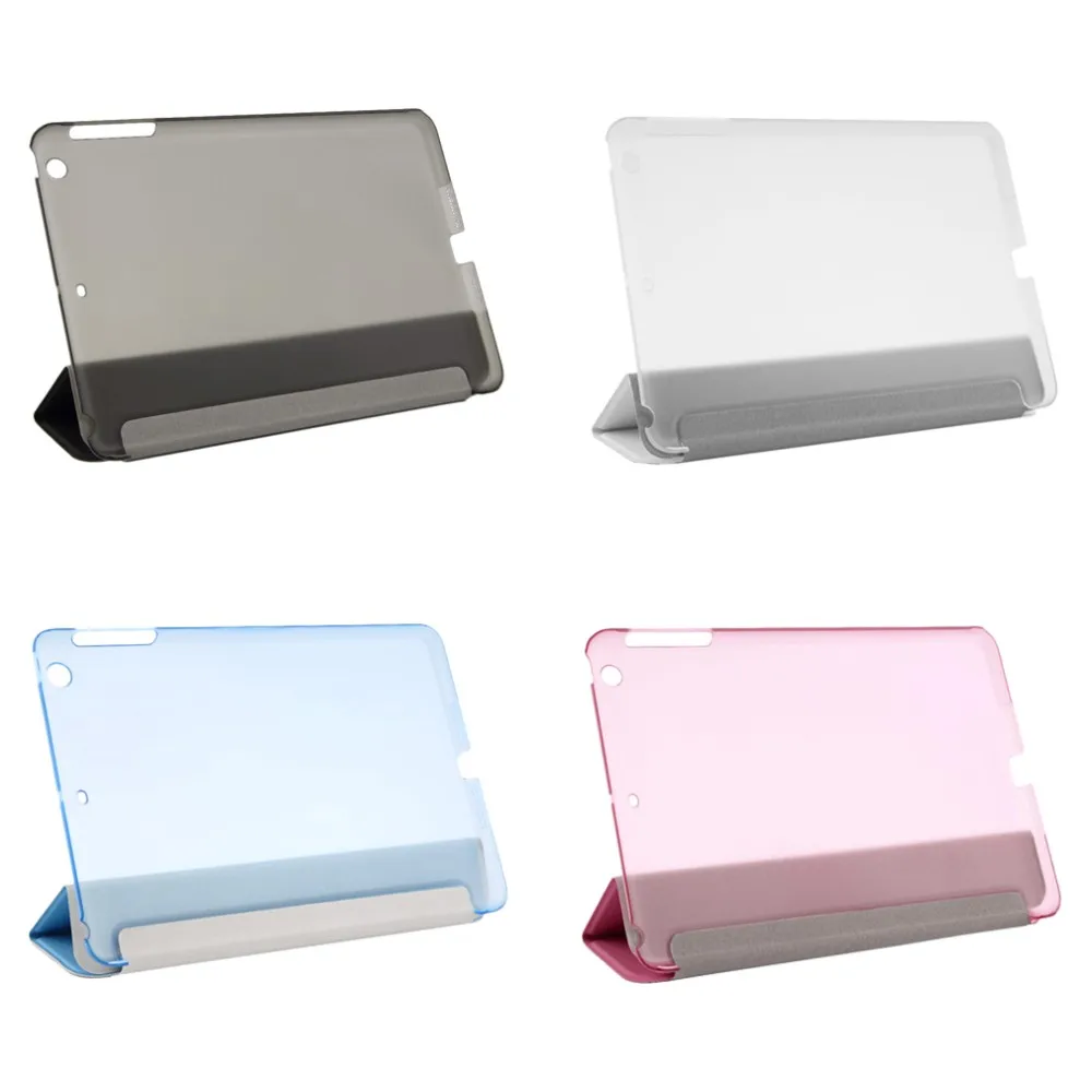 Comprar Funda inteligente ultradelgada para iPad mini 1 2 3, Funda de cuero PU de tres pliegues con parte trasera dura de cristal de 7,9 pulgadas, tapa abatible para tableta, novedad