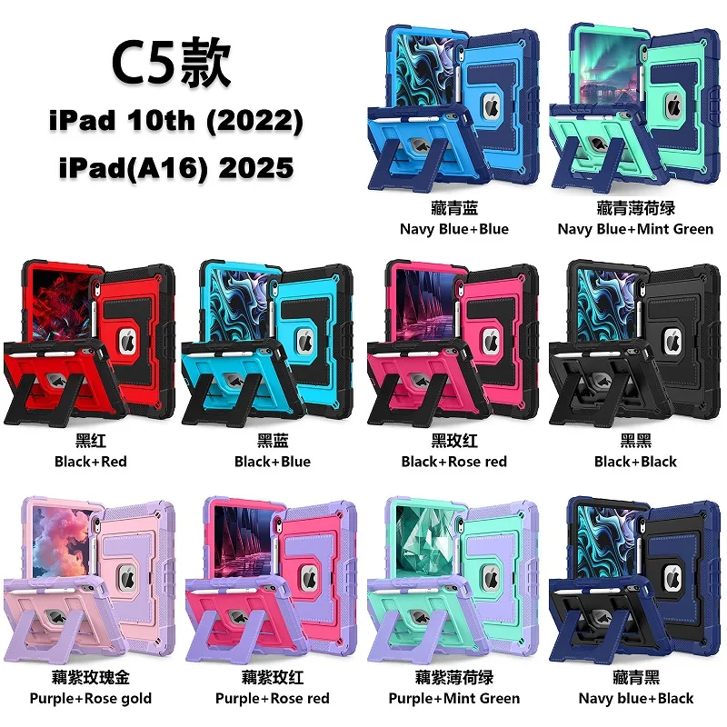 Funda para iPad 7th 8th 9th generación 10.2 Funda para iPad 11th Gen 11 10th 10.9 Funda para tableta con soporte híbrido de silicona segura a prueba de golpes para PC