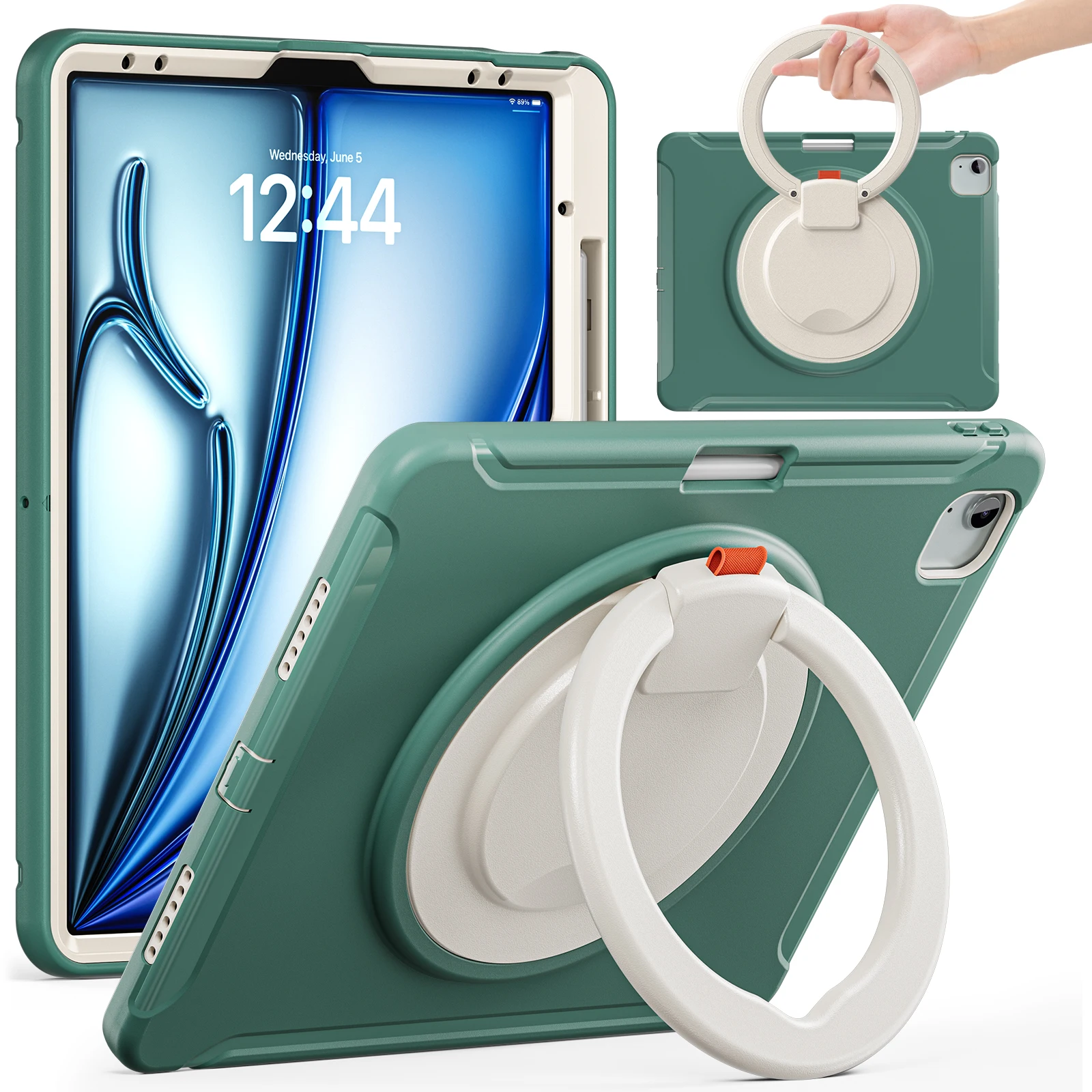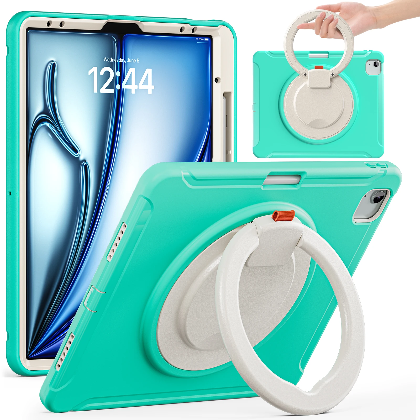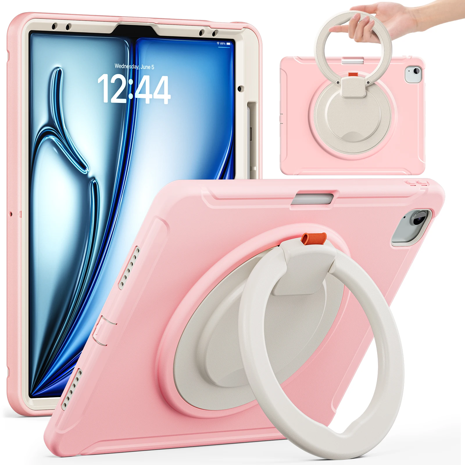 Funda para iPad Air 13 2025 M3 2024 M2 Pro 12.9 2018 2020 2022, 3a 4a 5a sexta generación, cubierta híbrida con mango giratorio 360