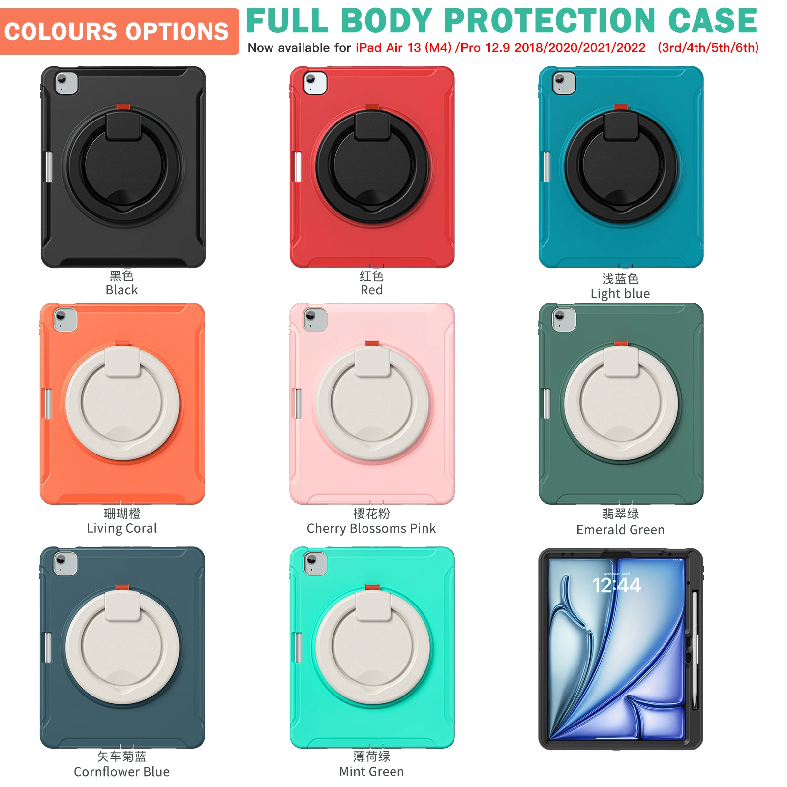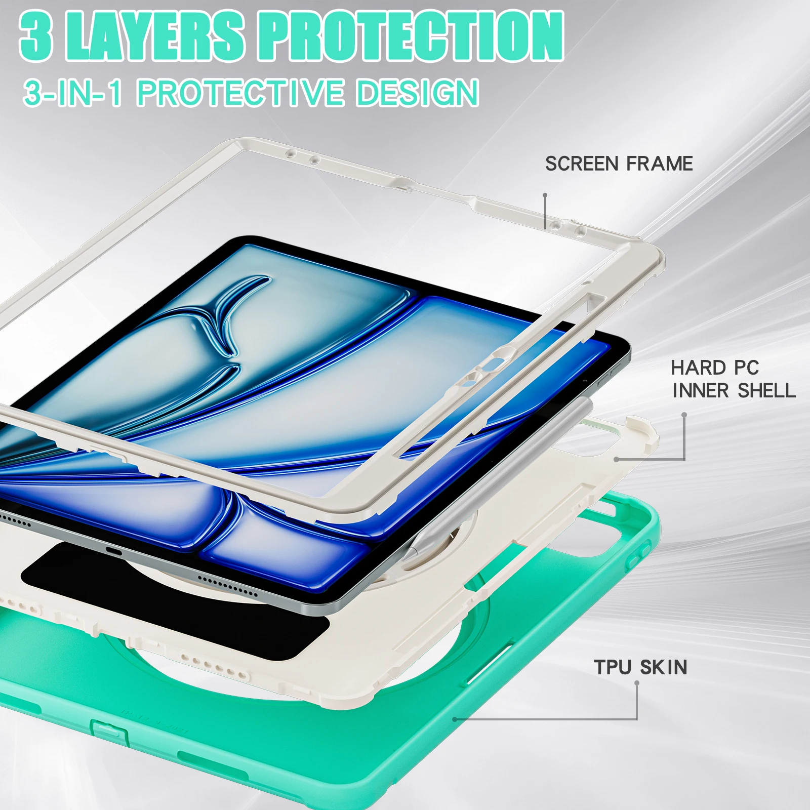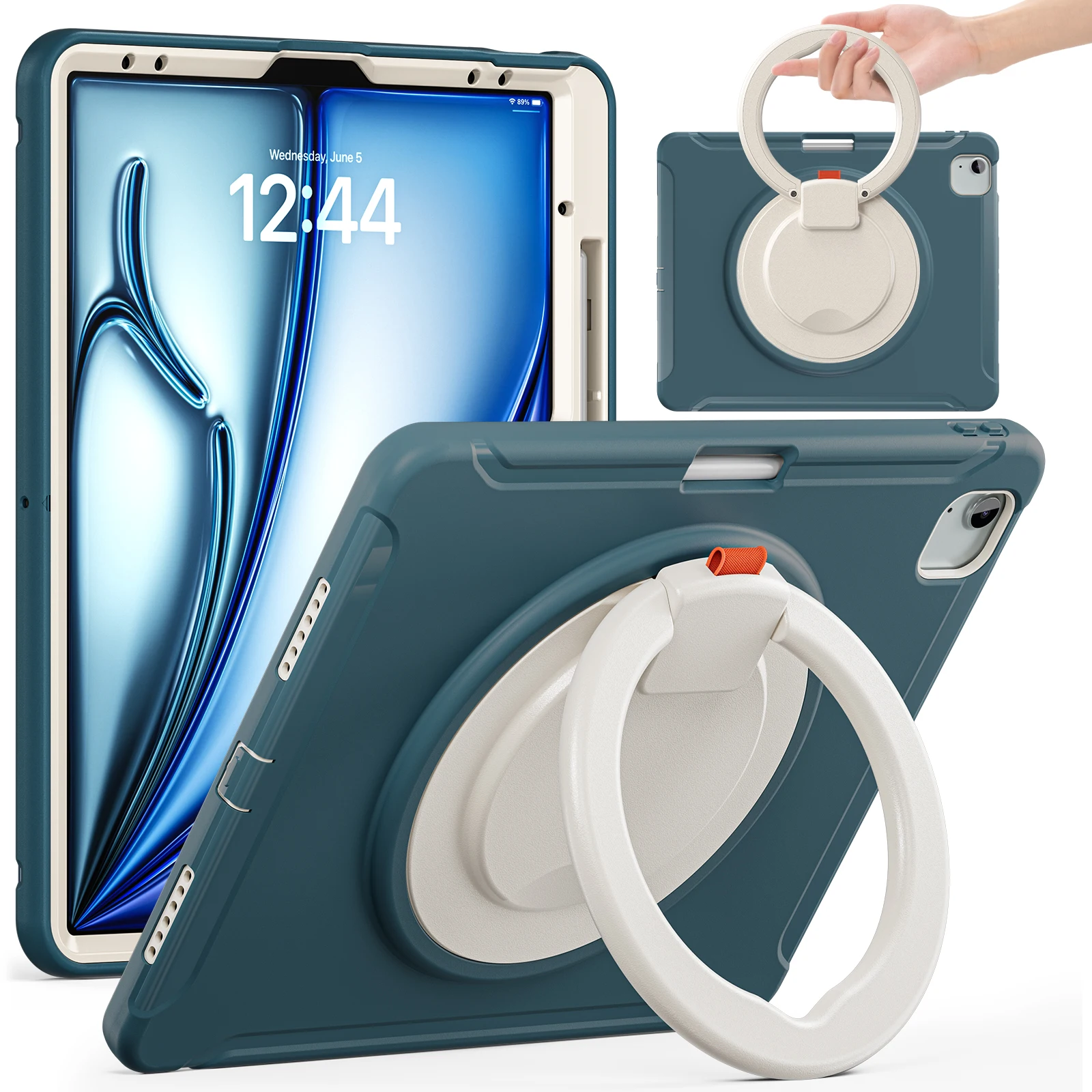 Funda para iPad Air 13 2025 M3 2024 M2 Pro 12.9 2018 2020 2022, 3a 4a 5a sexta generación, cubierta híbrida con mango giratorio 360