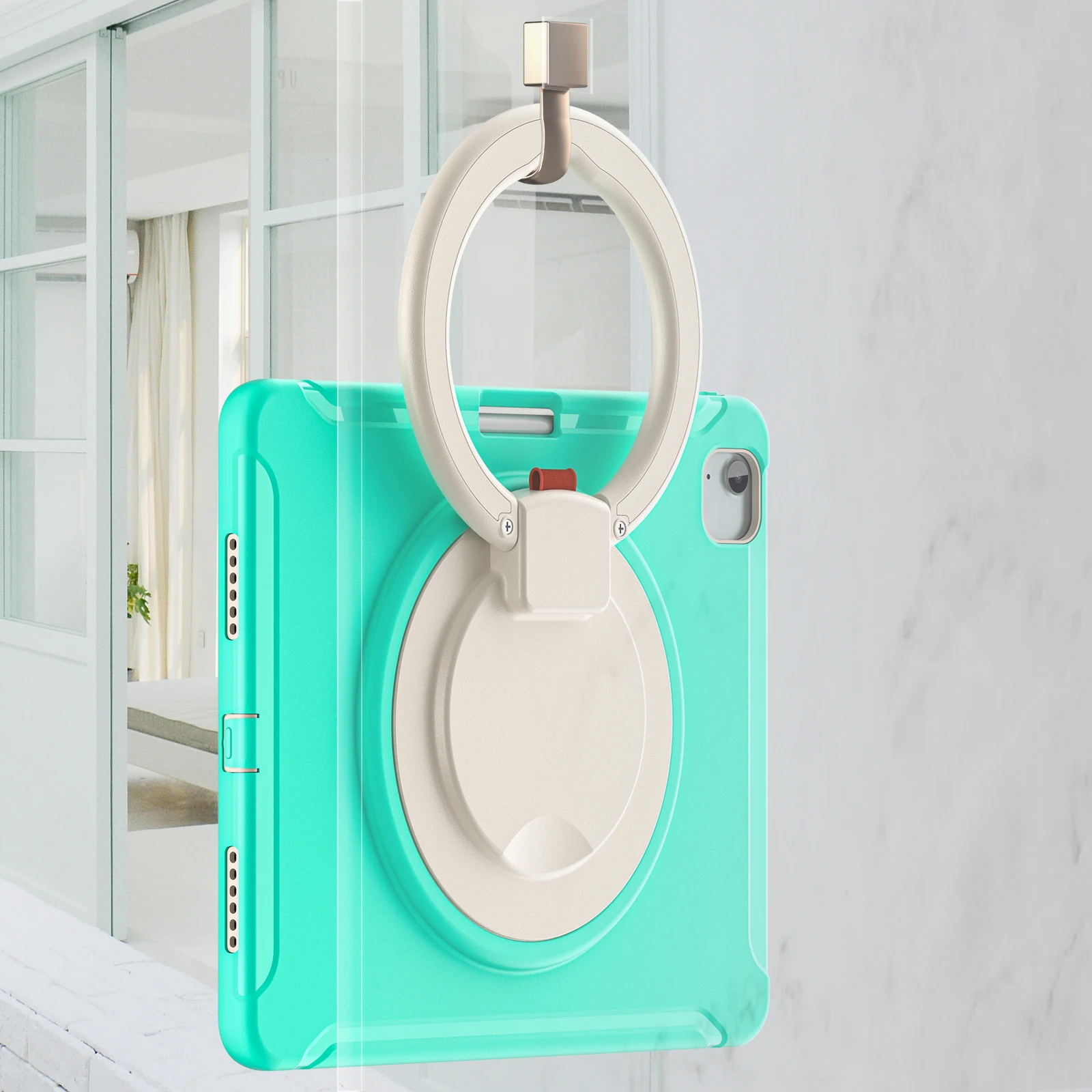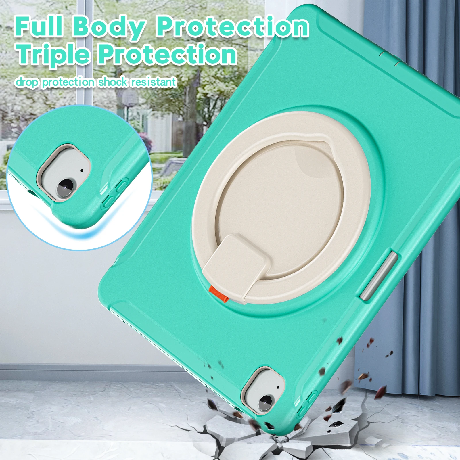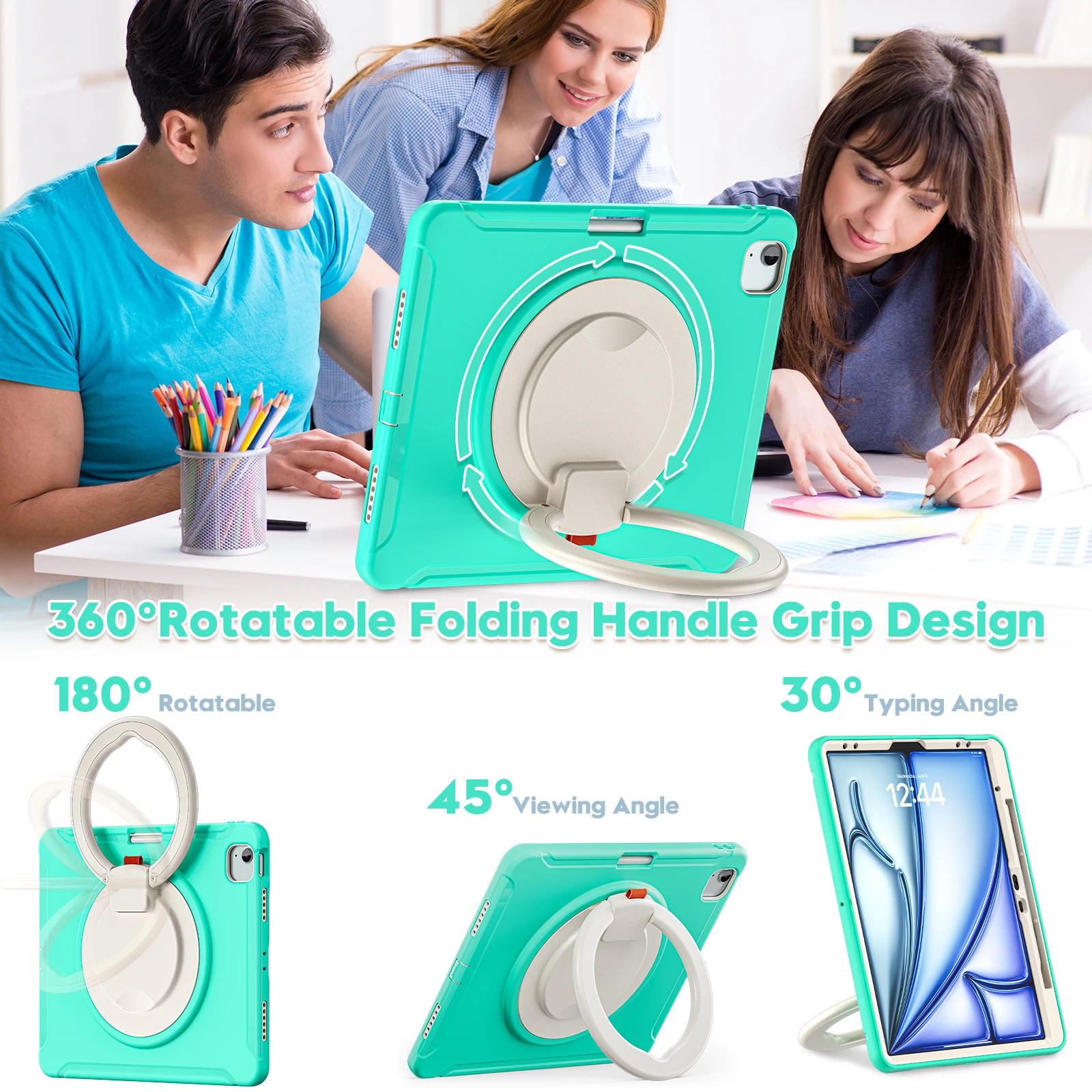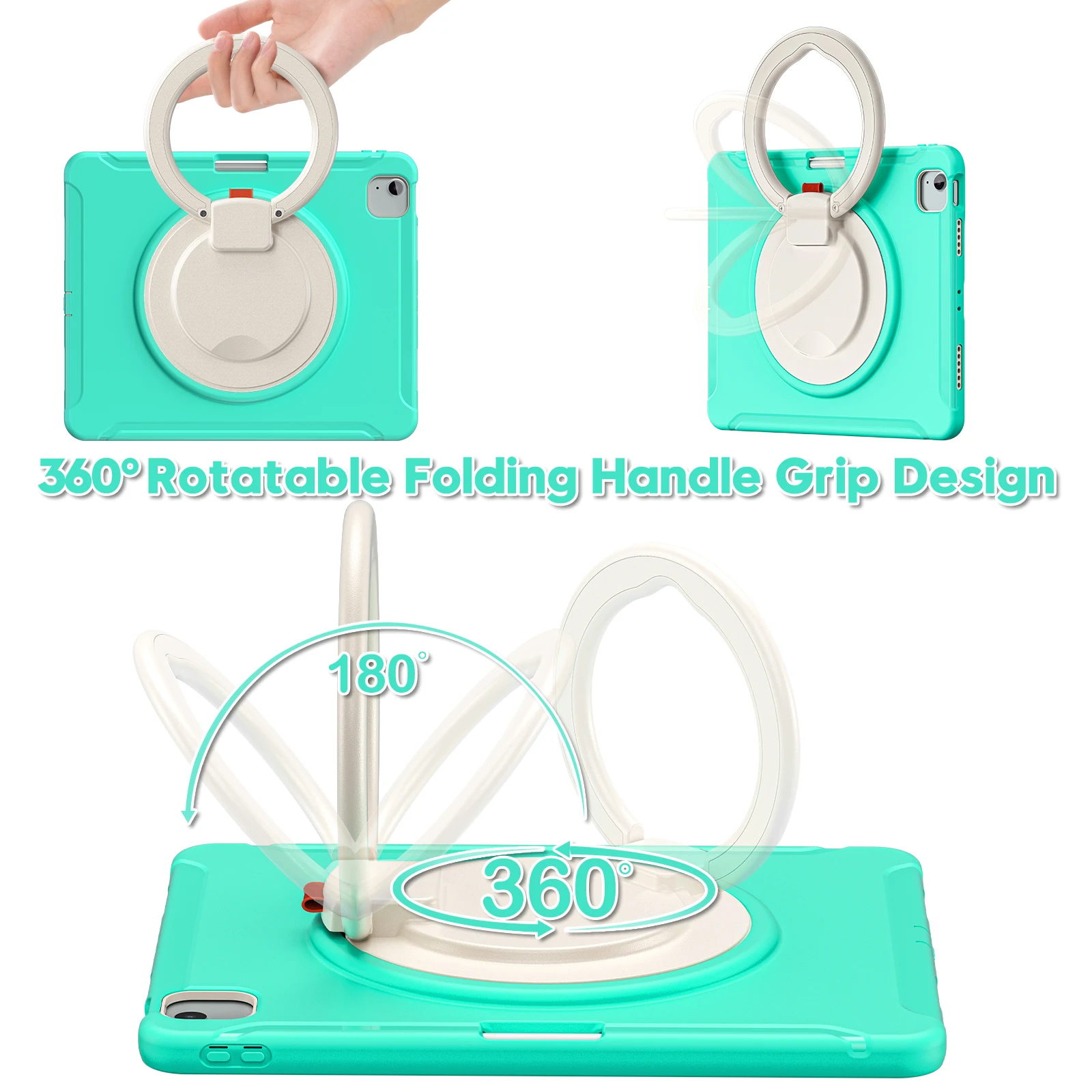 1) Soporte incorporado:El soporte giratorio incorporado con rotación de 360 grados permite una mayor versatilidad de visualización y coloque su tableta en cualquier ángulo para disfrutar escribiendo o viendo