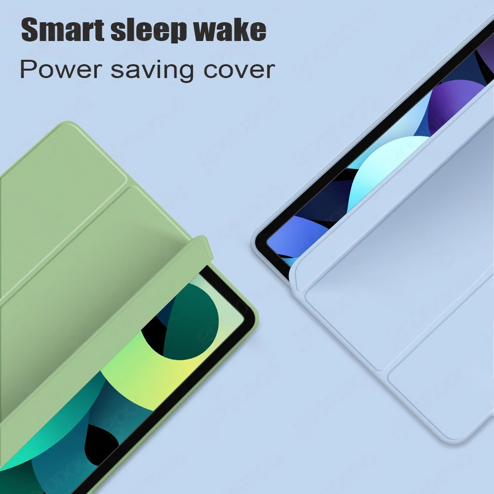 La Funda de cuero con tapa está unida a la pantalla por un imán. Cuando enciende o apaga la carcasa, el sensor magnético inteligente activa o duerme automáticamente la almohadilla, lo que puede extender el tiempo de espera de la almohadilla y reducir el consumo de energía de la batería.