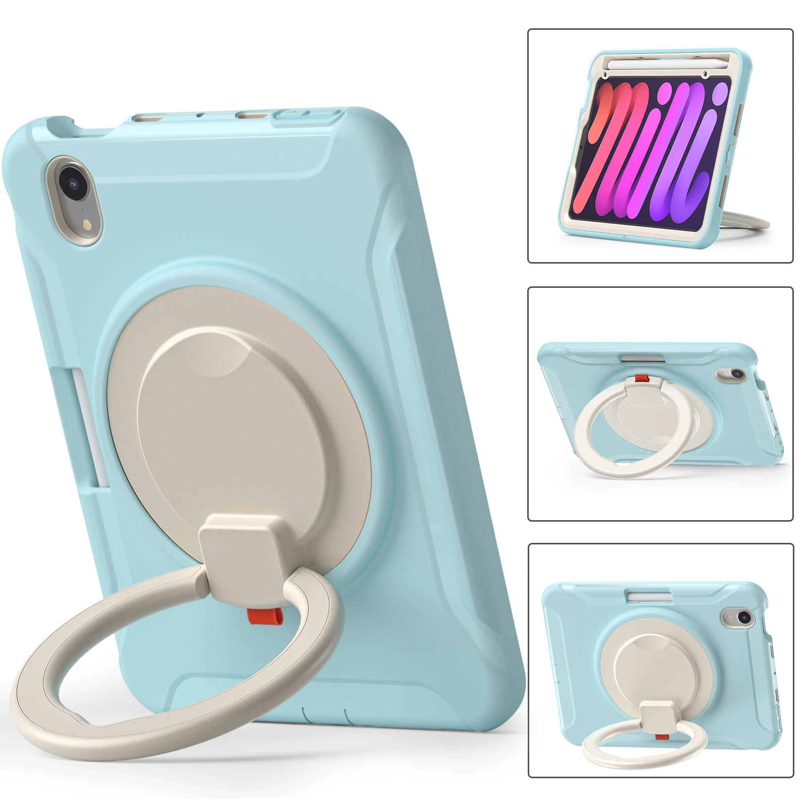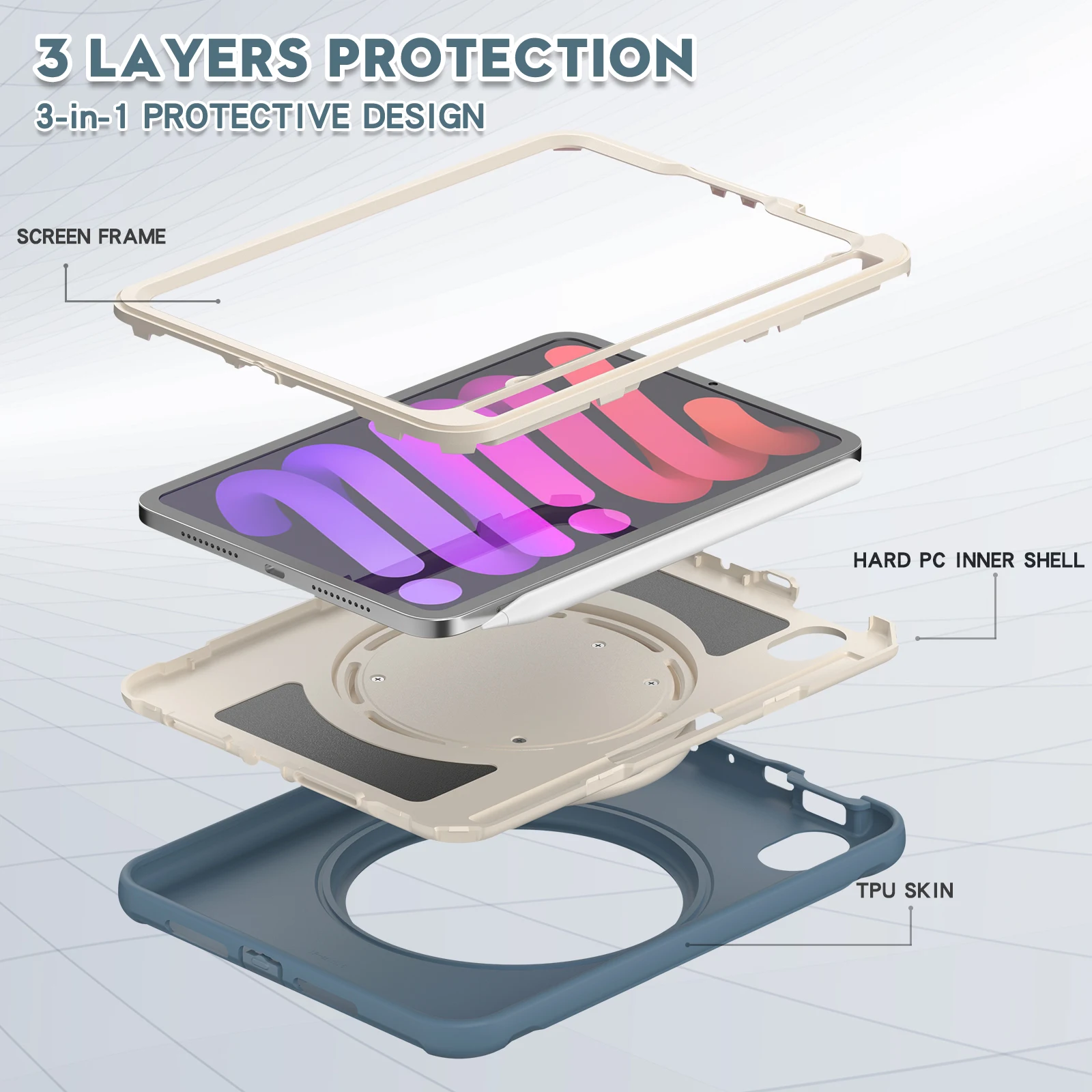 Case For iPad Mini 7 A17 Pro 2024 Mini 7 2021 8.3" A2993 A2995 A2996 A2567 A2568 A2569 360 Rotating Stand Armor Cover Shockproof
