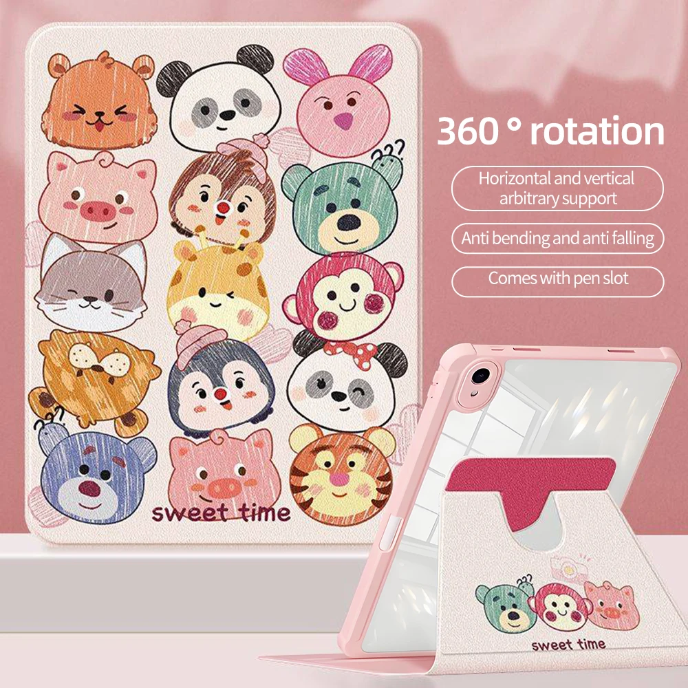 Funda para iPad con rotación de 360, iPad Air 4 5,7/8/9 Gen 10,2, 10.9, iPad Pro11 12,9 13,Air 11 13 M3 M4 Mini 6 7 con funda para dormir/agarrar