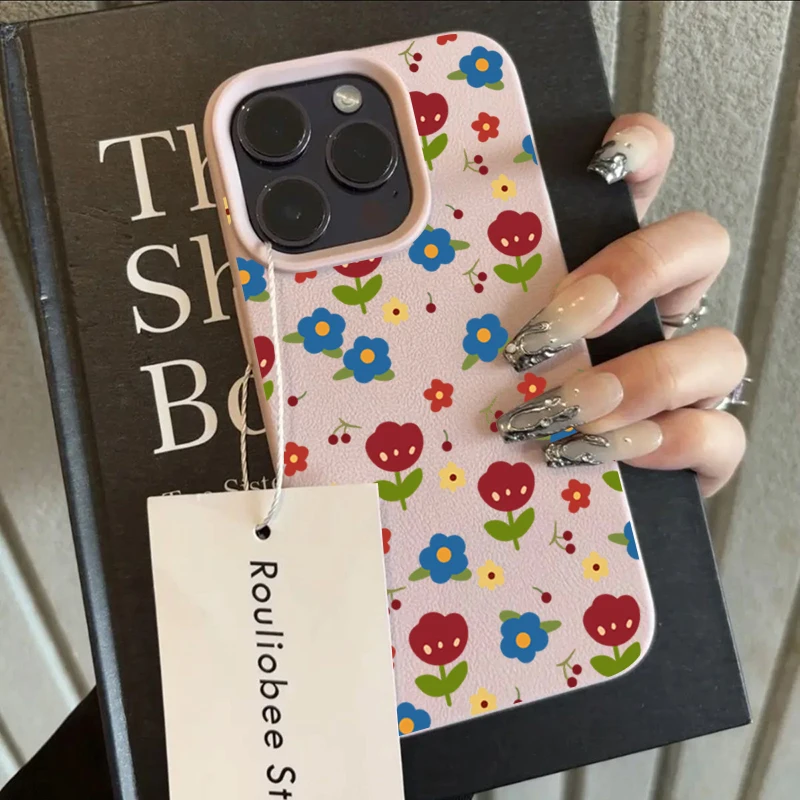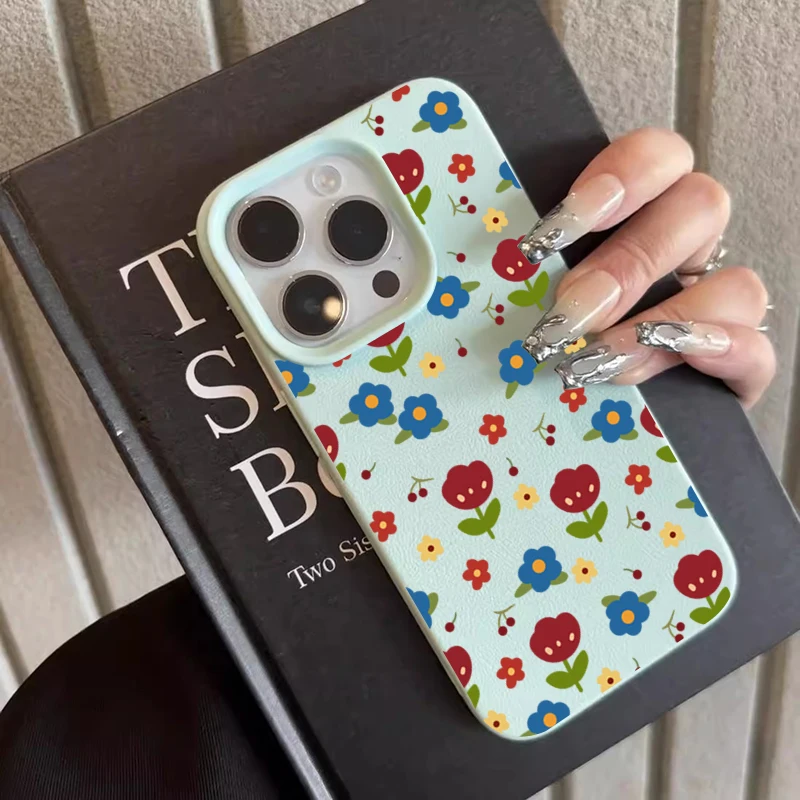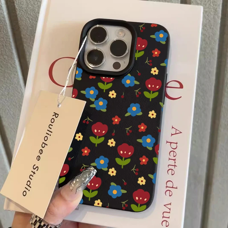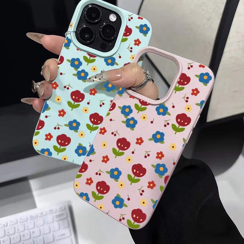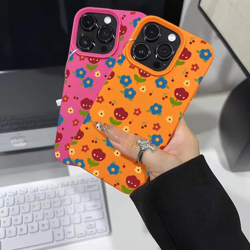 Comprar Funda para iPhone 11 12 13 14 15 16 Pro Max, funda de silicona con patrón de lichi Floral colorido para iPhone XS X XR 16 Plus