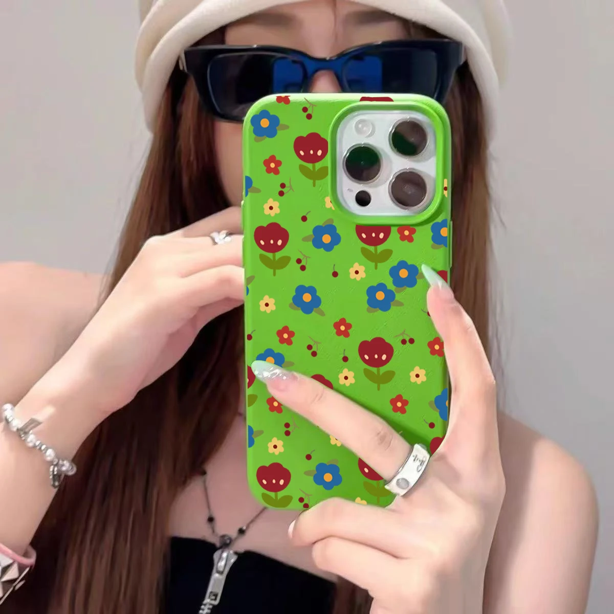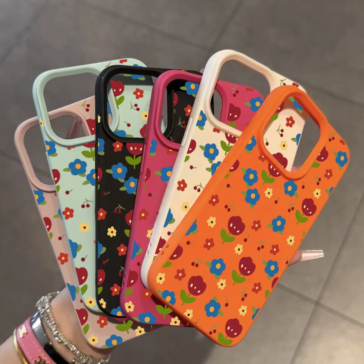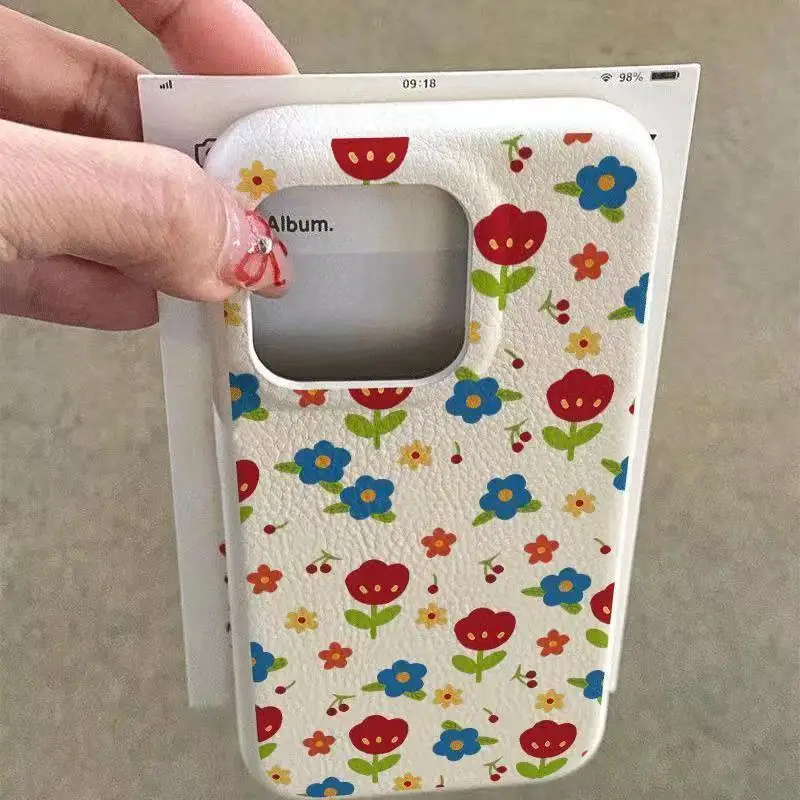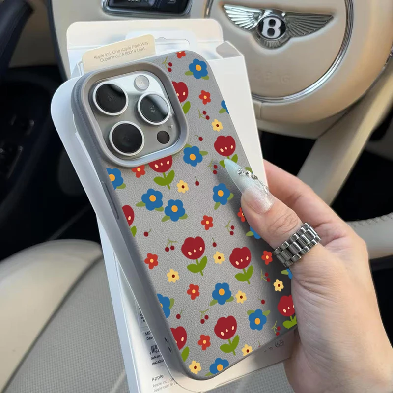 Comprar Funda para iPhone 11 12 13 14 15 16 Pro Max, funda de silicona con patrón de lichi Floral colorido para iPhone XS X XR 16 Plus