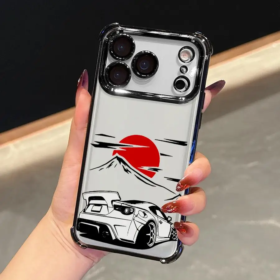 Funda para iPhone 13 12 11 Pro Max 16e 16 15 14 Plus 17 Air Soft Cover JDM Drift Car Red Sun