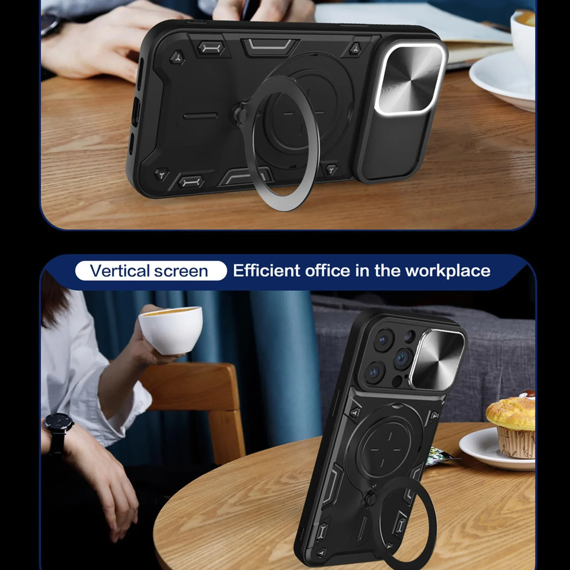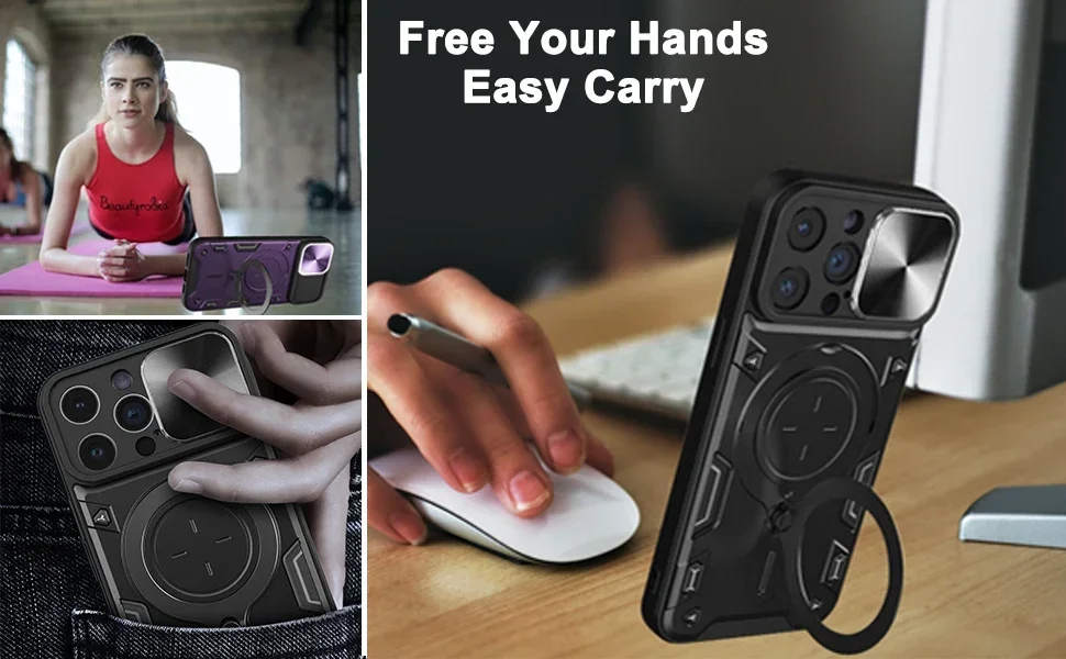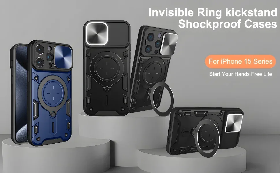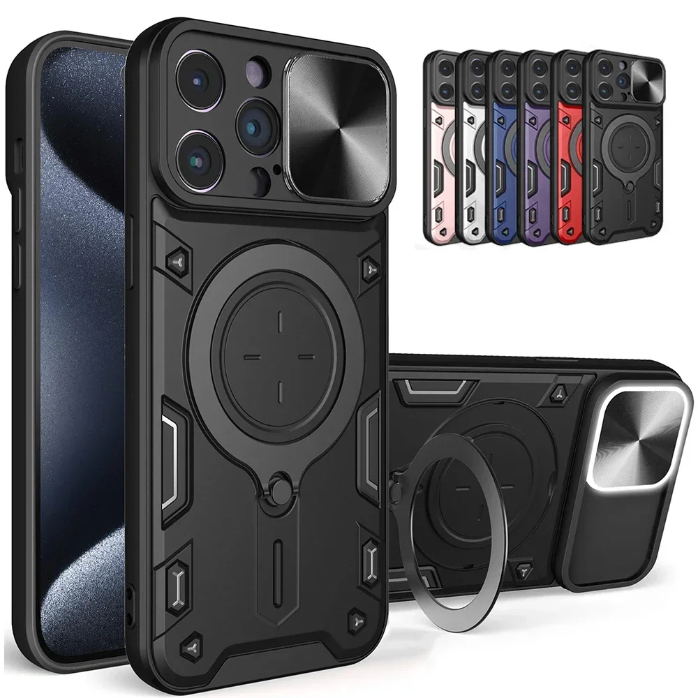 Funda para iPhone 15 14 13 12 11 Pro Max 15 Plus XR XS 8 7 Slide Camera Protection 360 Rotate Kickstand Armor Ring Cover