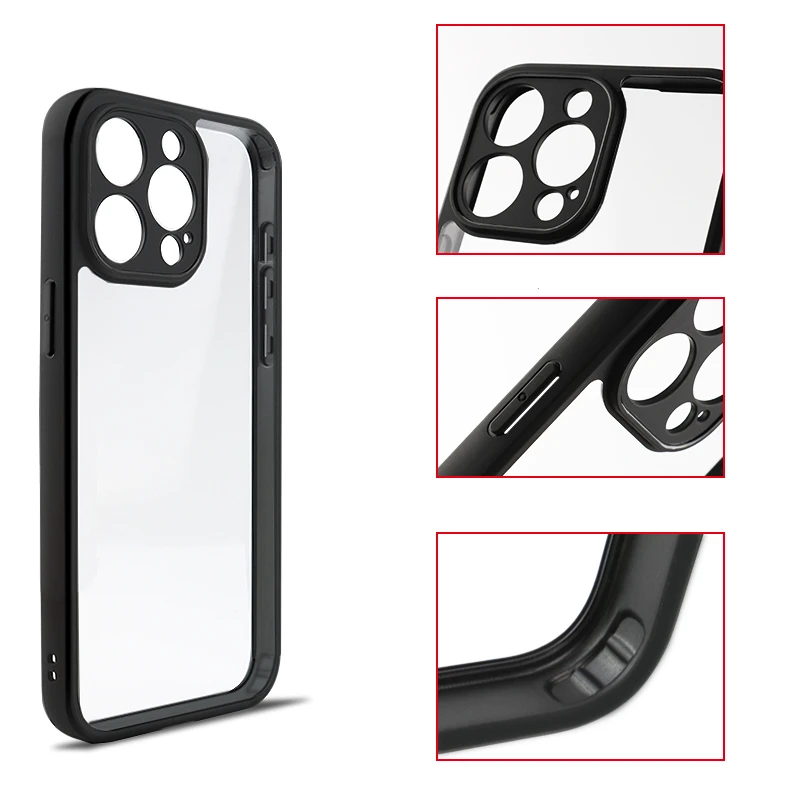 Comprar Funda para iPhone 15 Pro Max, carcasa transparente a prueba de golpes, marco negro