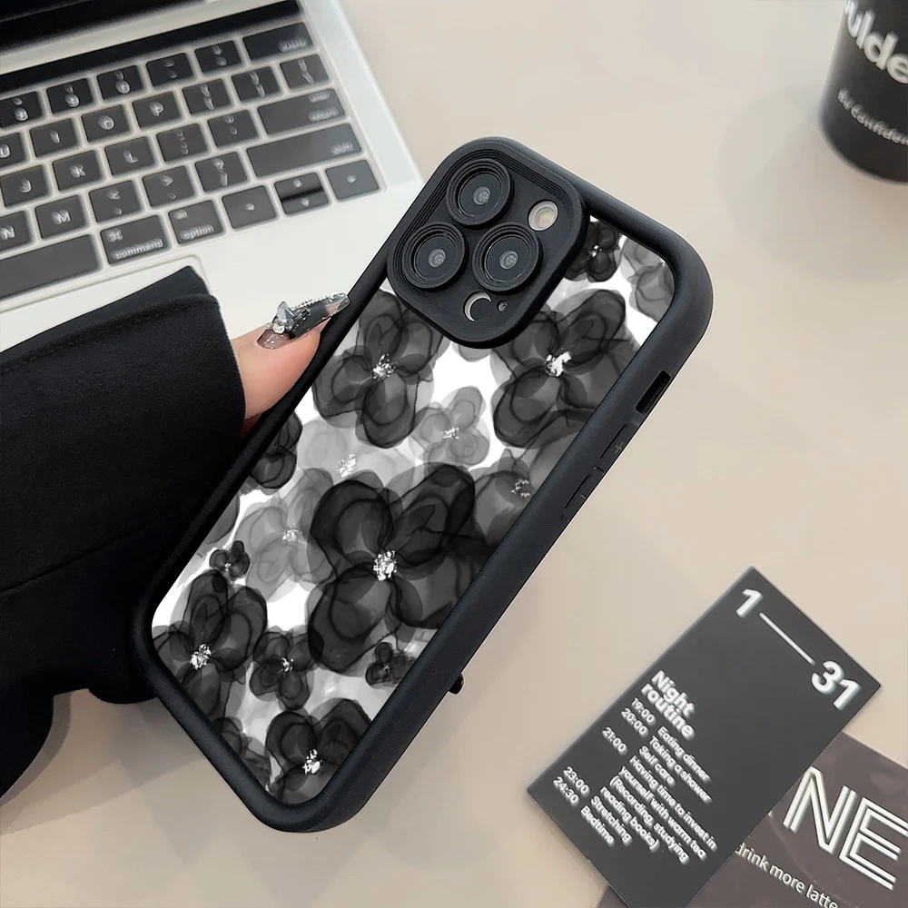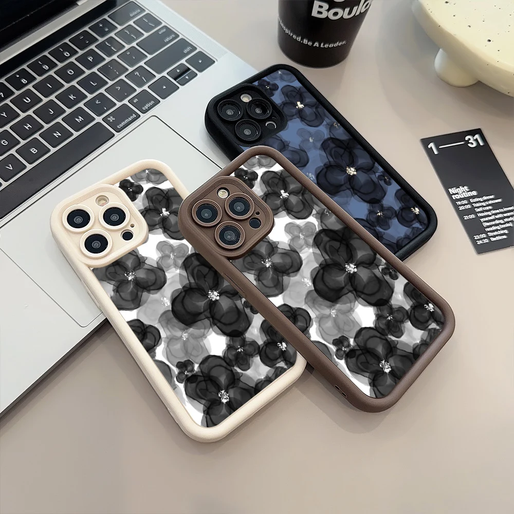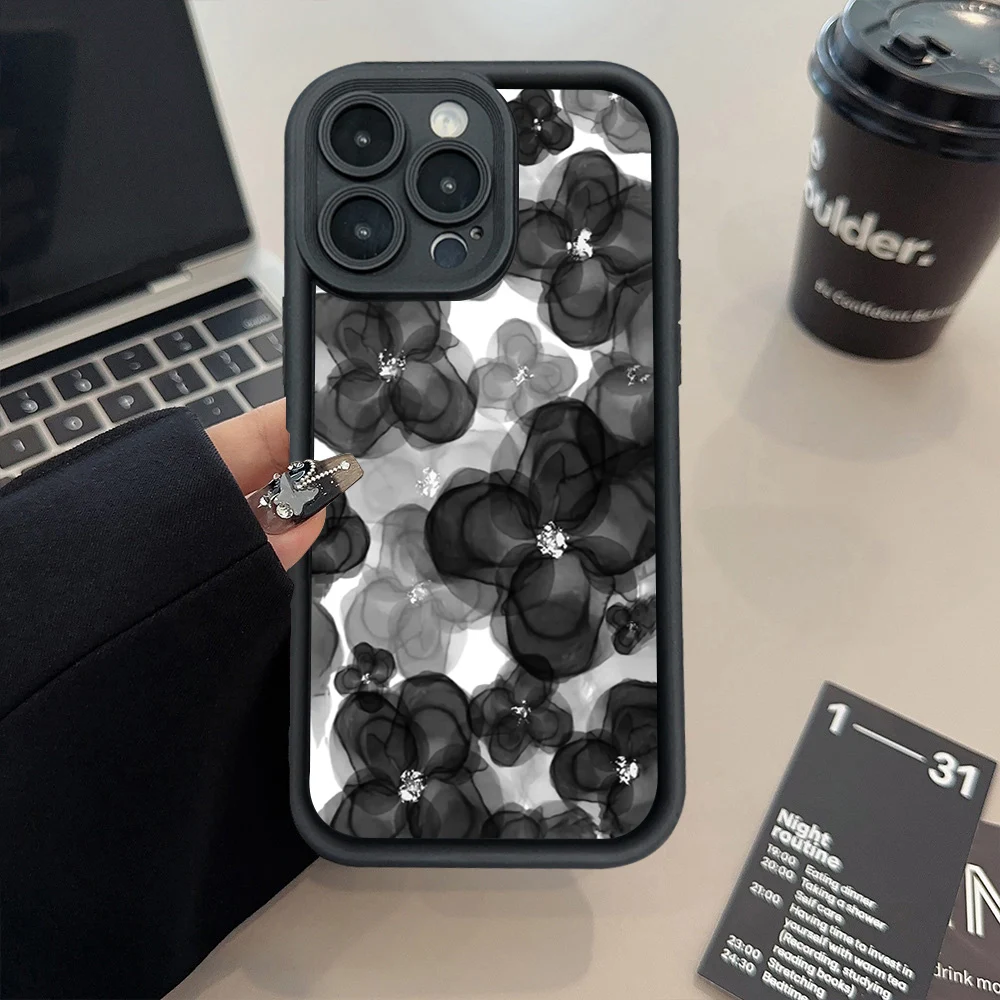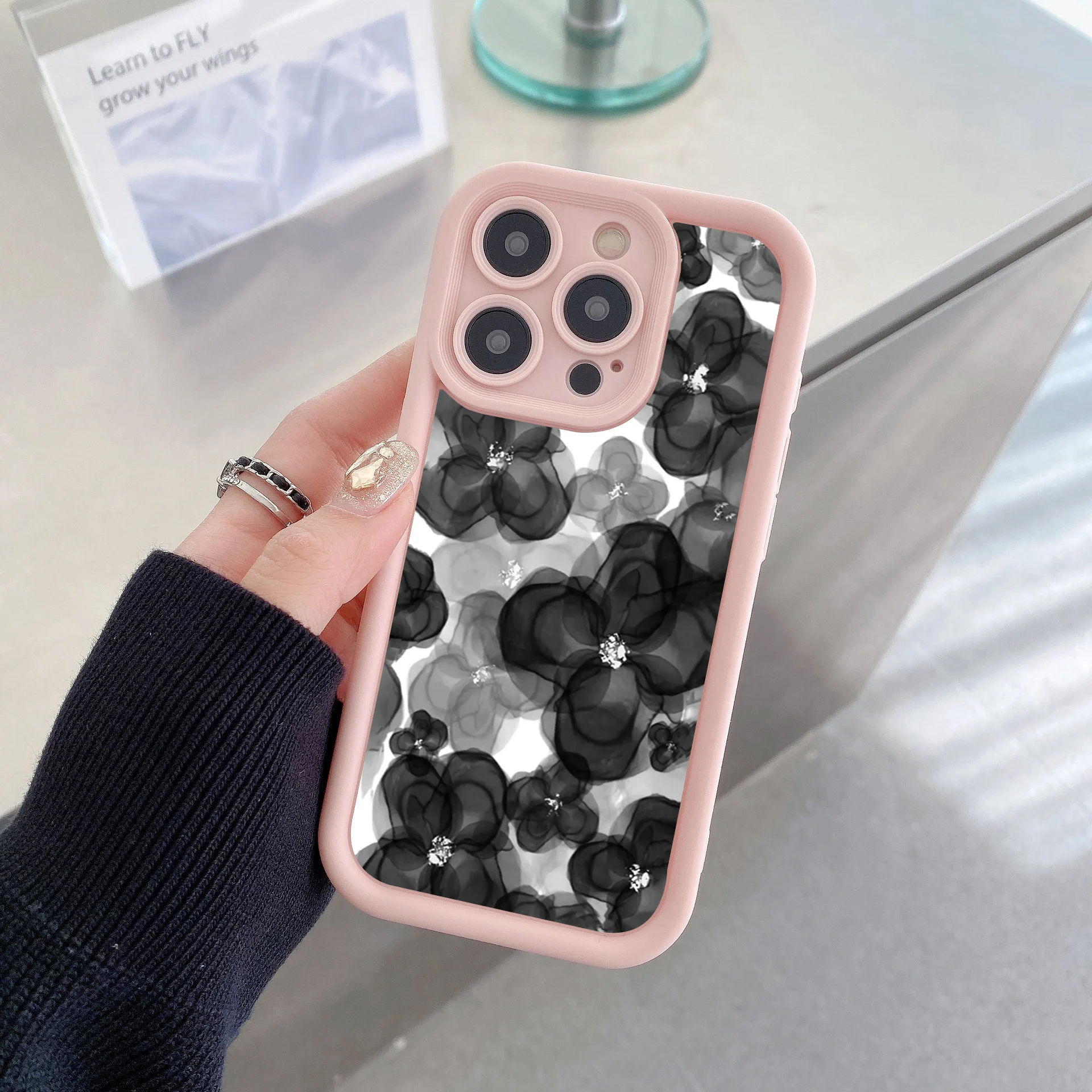 Comprar Funda para iPhone 16 15 14 13 12 11 Pro Max, funda de teléfono con diseño Floral negro para iPhone X XS XR 7 8 Plus SE 2022, fundas suaves de silicona