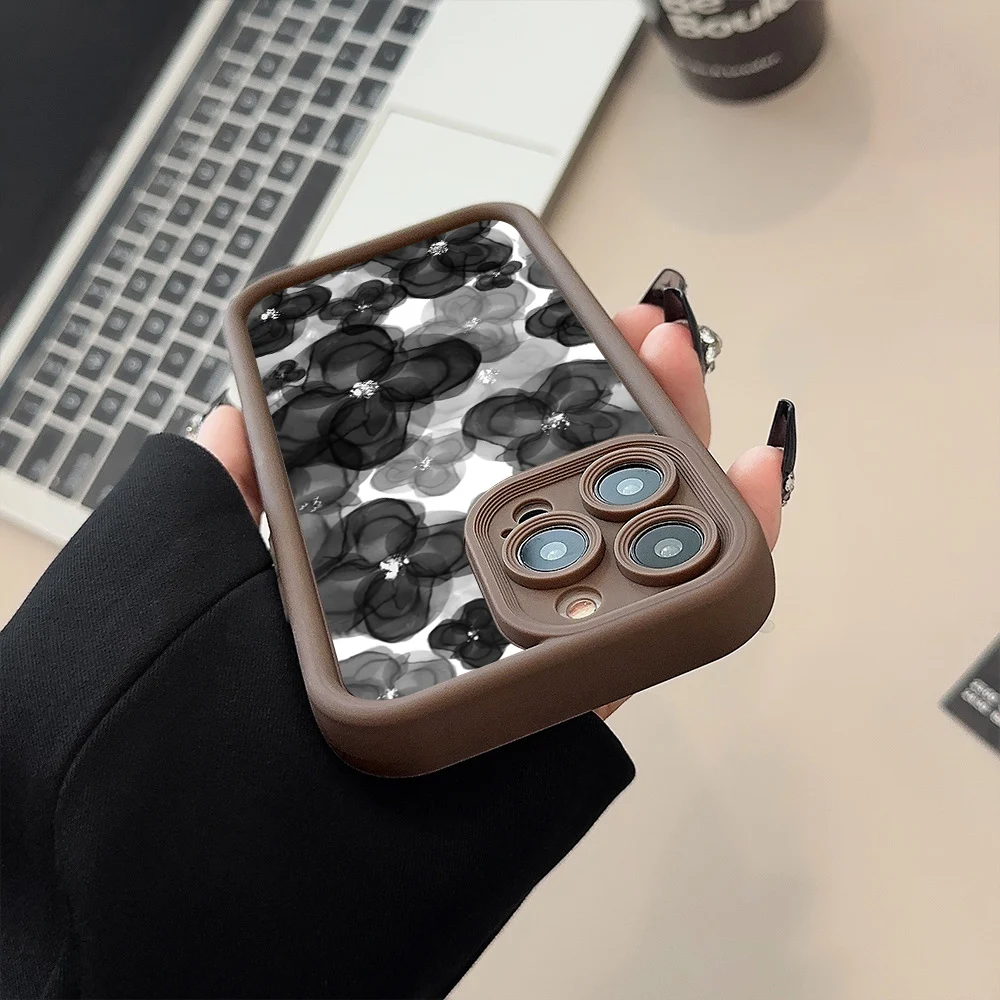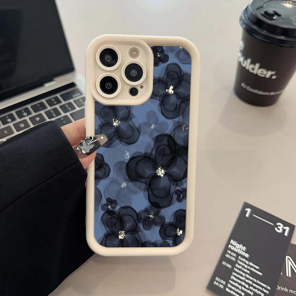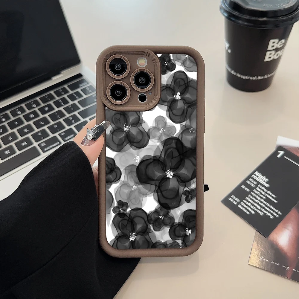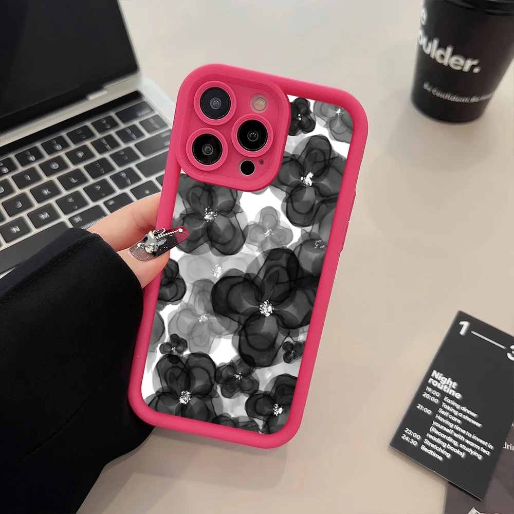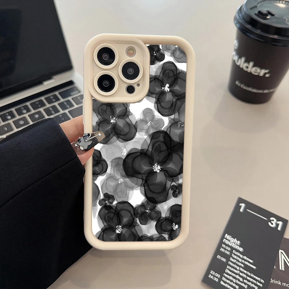 Comprar Funda para iPhone 16 15 14 13 12 11 Pro Max, funda de teléfono con diseño Floral negro para iPhone X XS XR 7 8 Plus SE 2022, fundas suaves de silicona